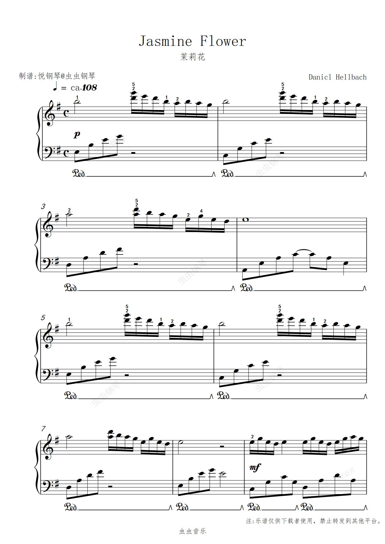 钢琴谱:茉莉花//Jasmine Flower【抒情-唯美】