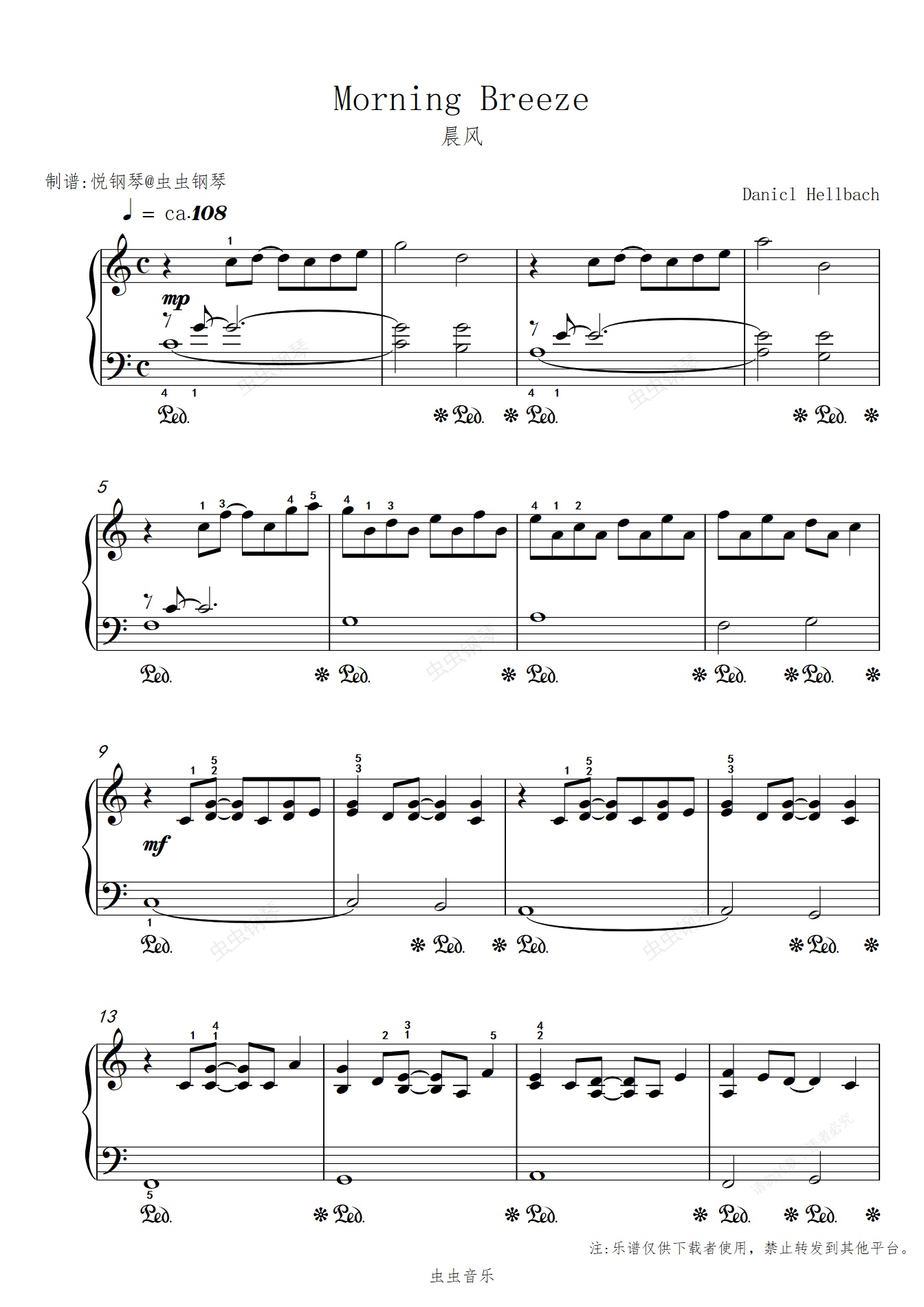 钢琴谱:晨风//Morning Breeze【抒情】