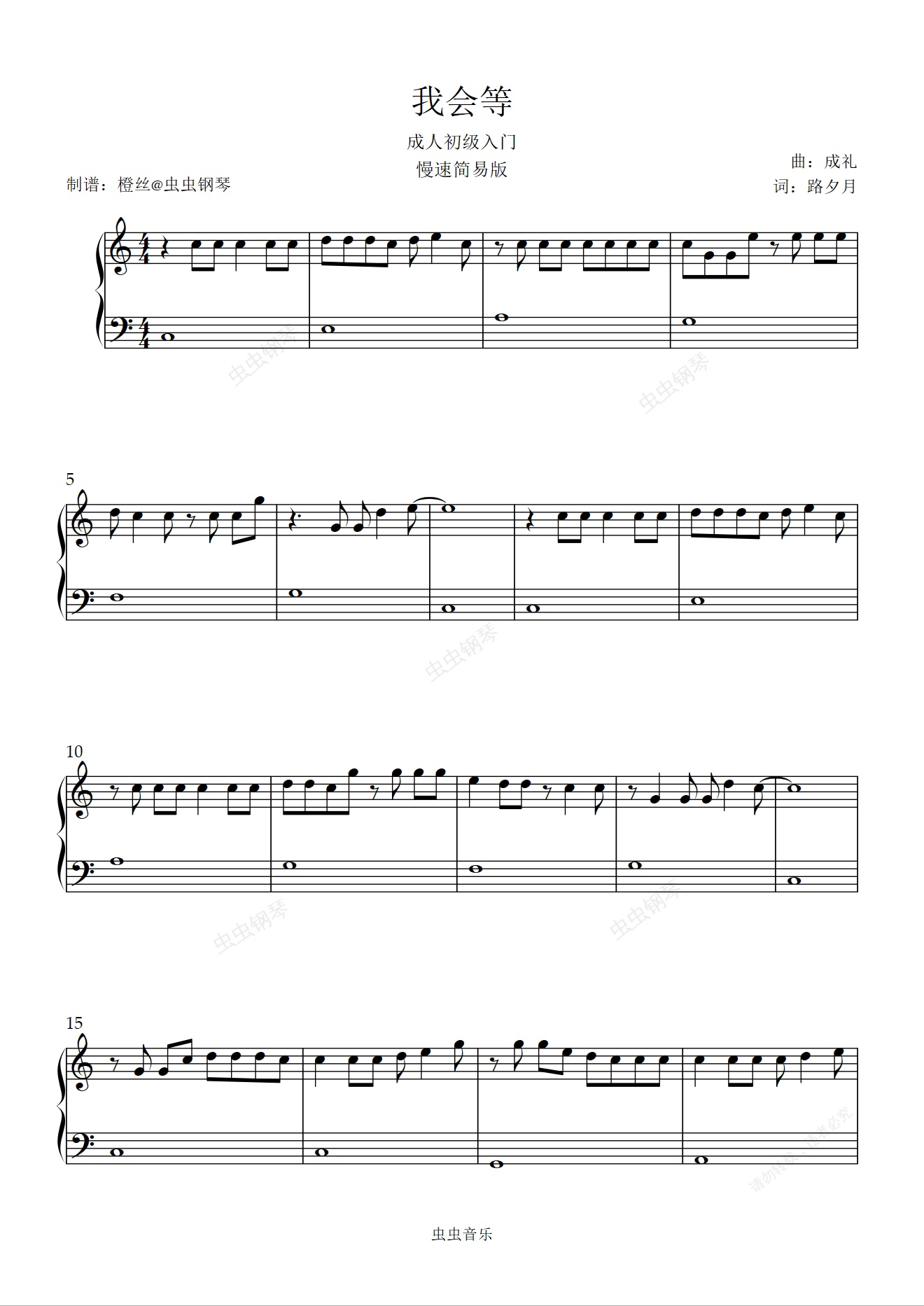 钢琴谱:我会等(成人初级入门)