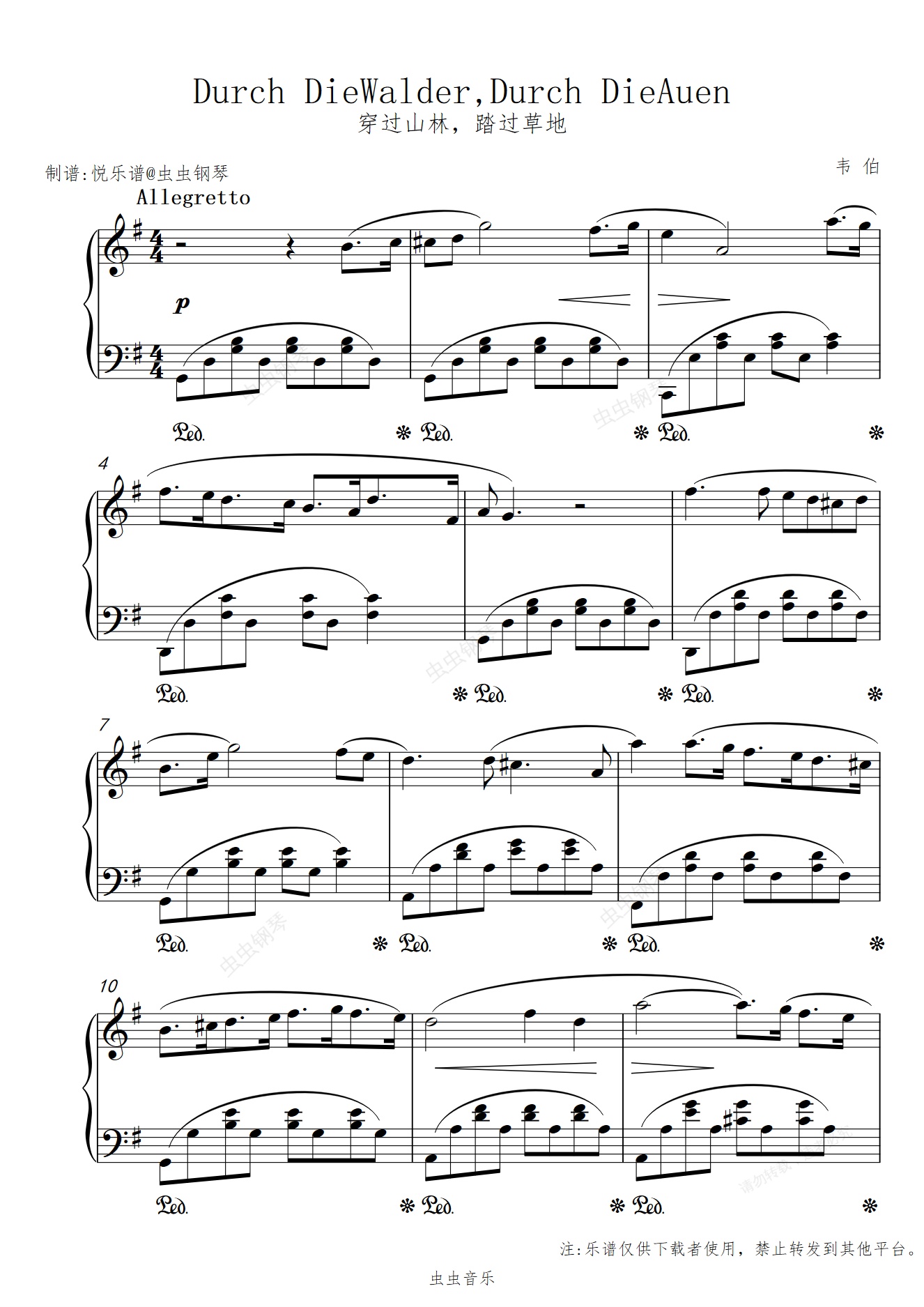 钢琴谱:穿过山林,踏过草地//Durch DieWalder,Durch DieAuen【抒情】