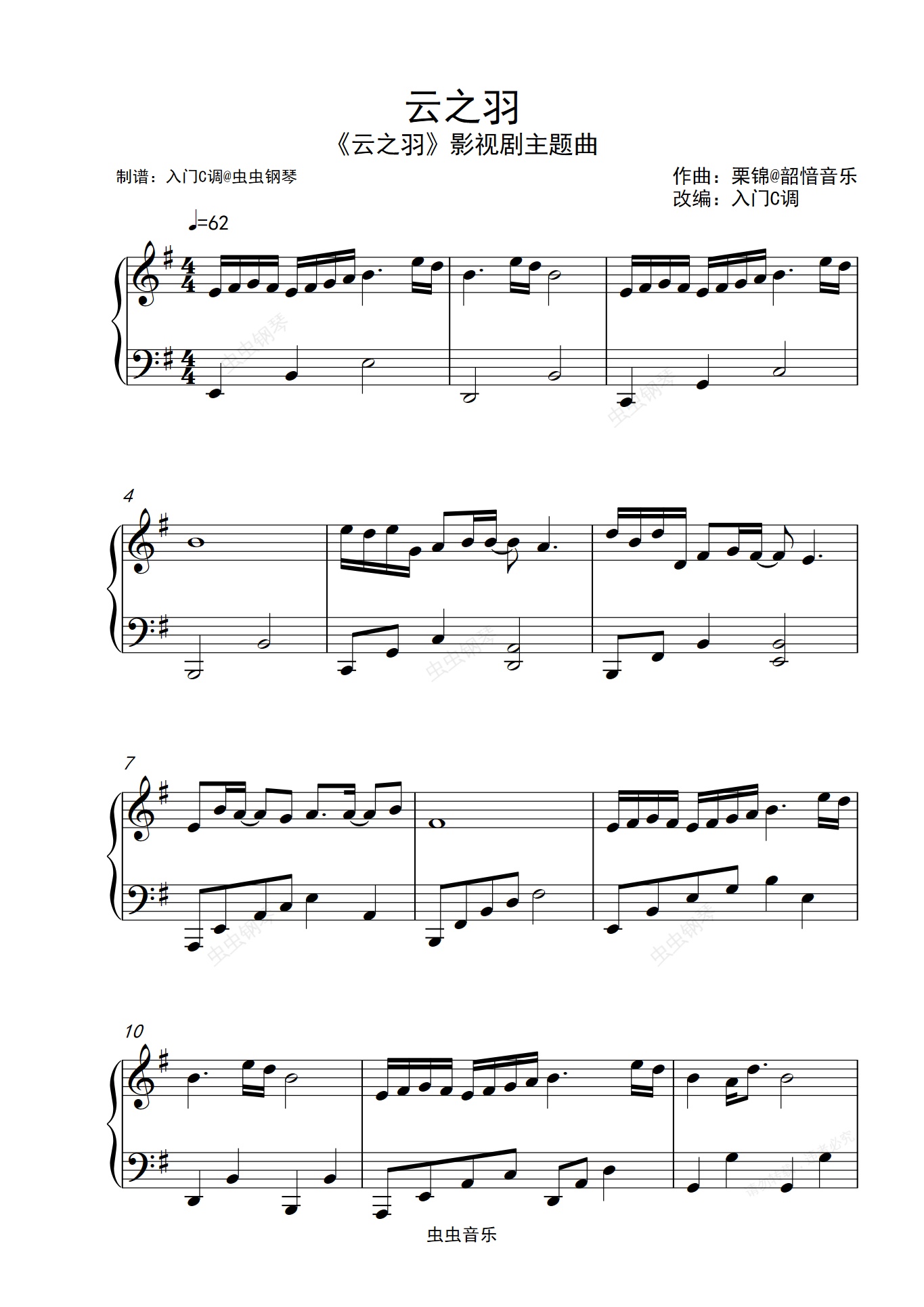 钢琴谱:张杰《云之羽》(《云之羽》主题曲)G调简单版