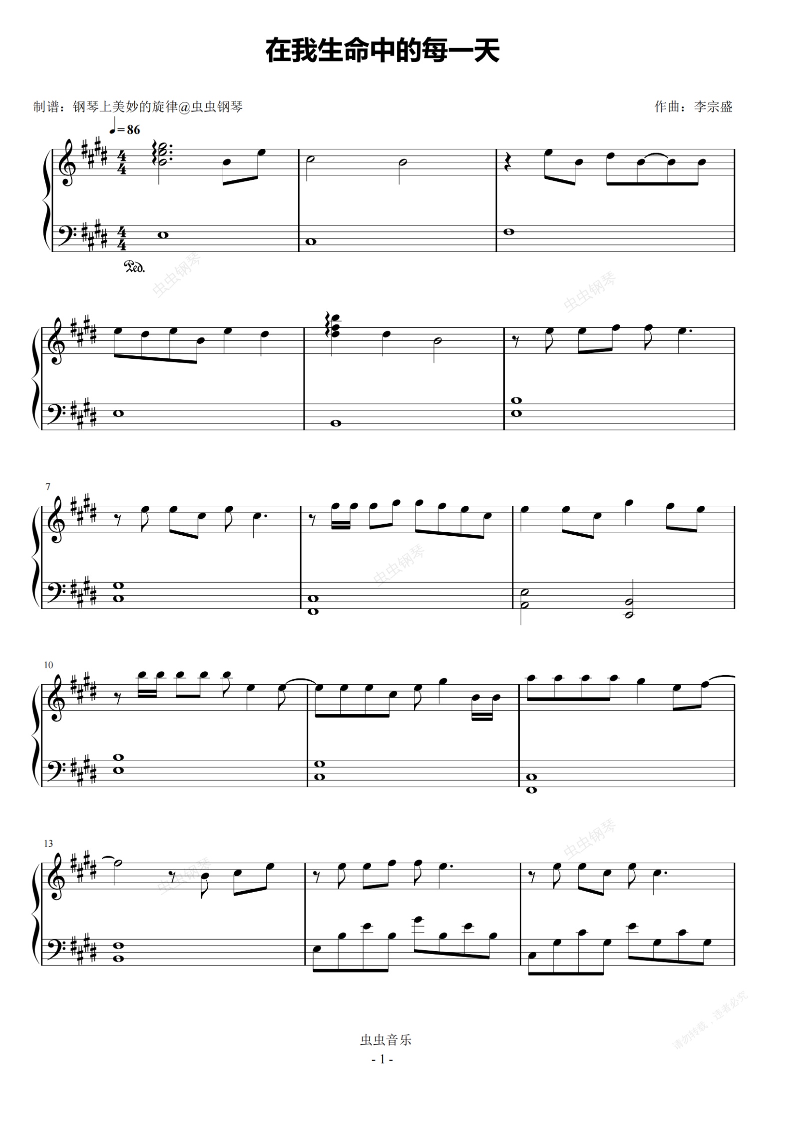 钢琴谱:在我生命中的每一天 原调简易版 成龙/苏慧伦