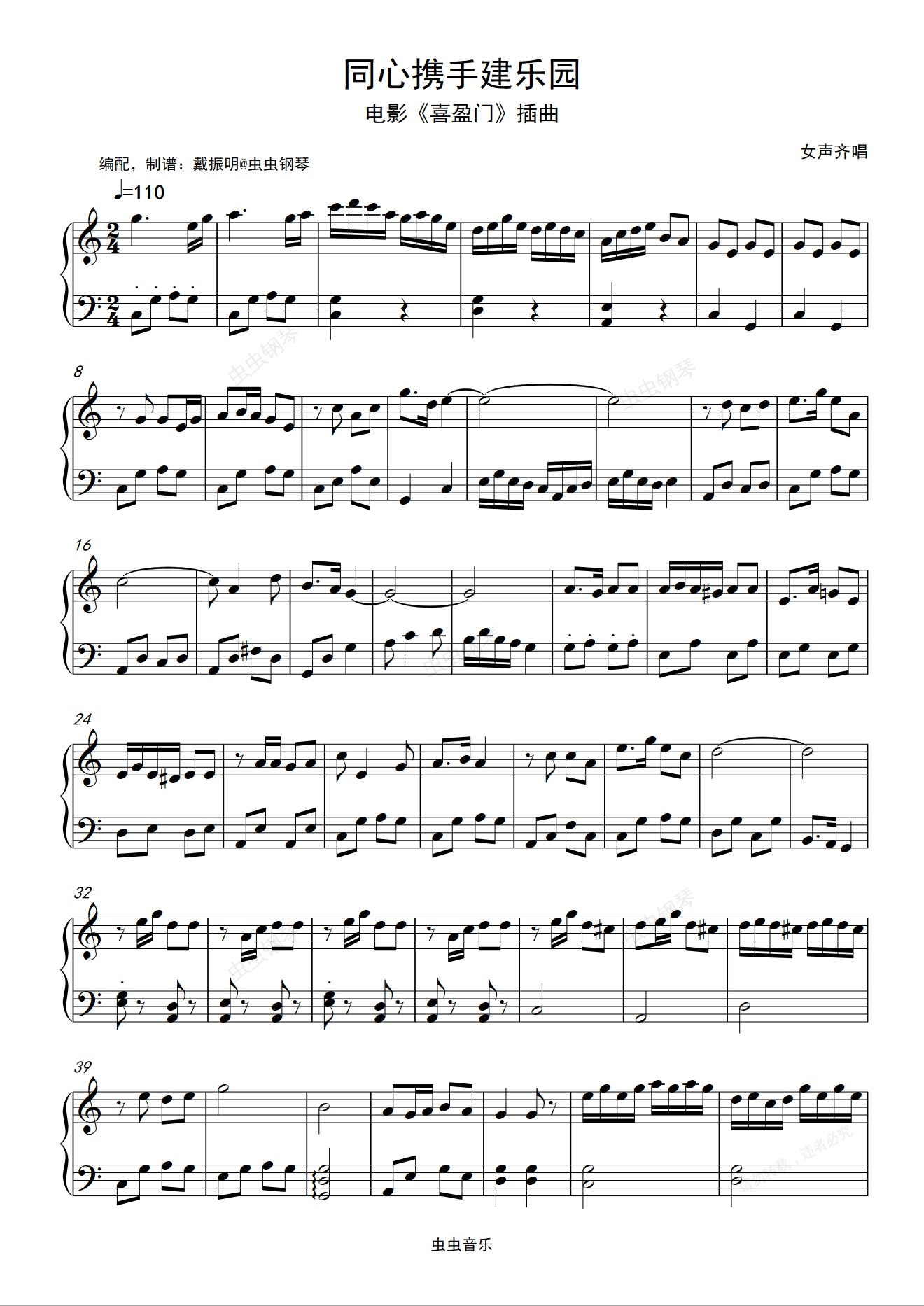 钢琴谱:同心携手建乐园
