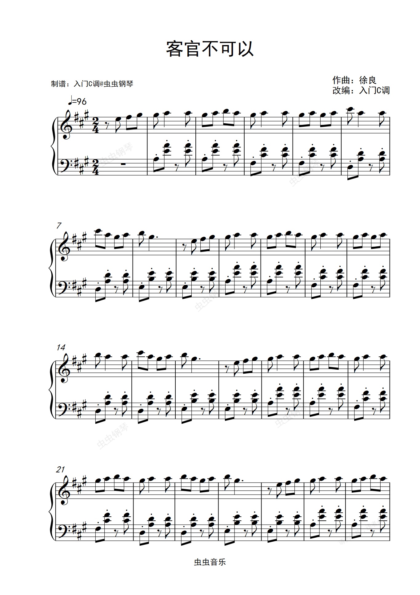 钢琴谱:【90后记忆】徐良《客官不可以》A调简单版