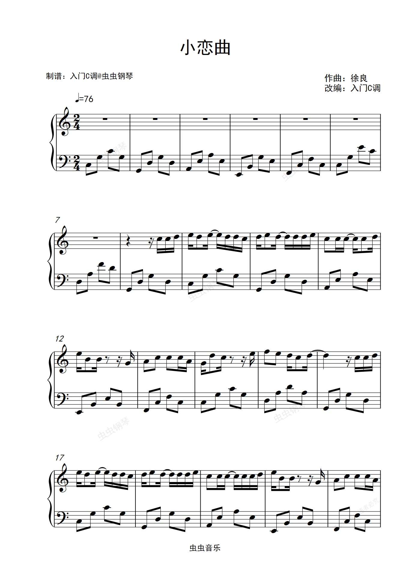 钢琴谱:【90后记忆】徐良《小恋曲》入门C调简单版