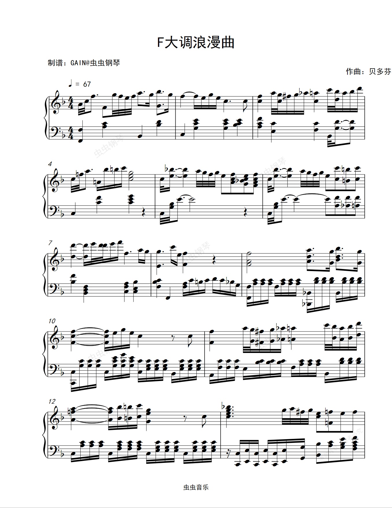 钢琴谱:F大调浪漫曲-贝多芬