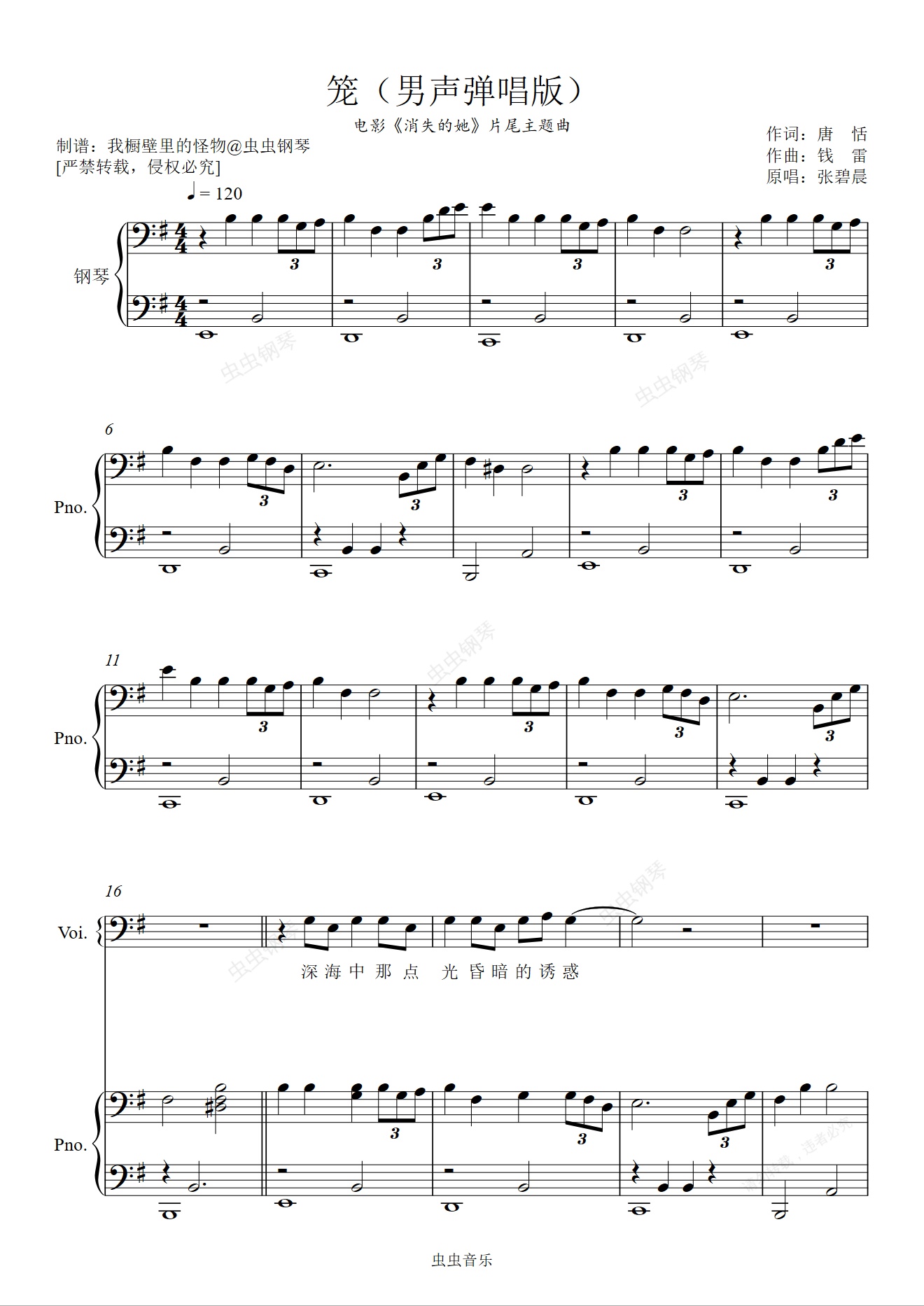 钢琴谱:【男版弹唱】《笼》完整弹唱谱 (消失的她 片尾主题曲)