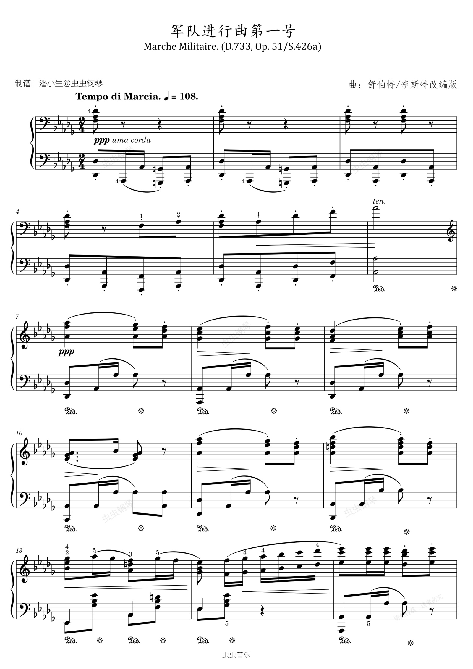 钢琴谱:舒伯特 军队进行曲第一号 原版带指法 Marches Militaires, No.1 D.733, Op. 51/S.426a(李斯特改编版)