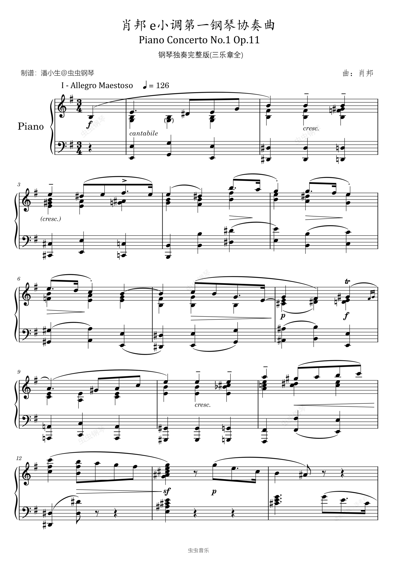 钢琴谱:肖邦 e小调第一钢琴协奏曲 钢琴独奏完整版(三个乐章全) Piano Concerto No.1 Op.11
