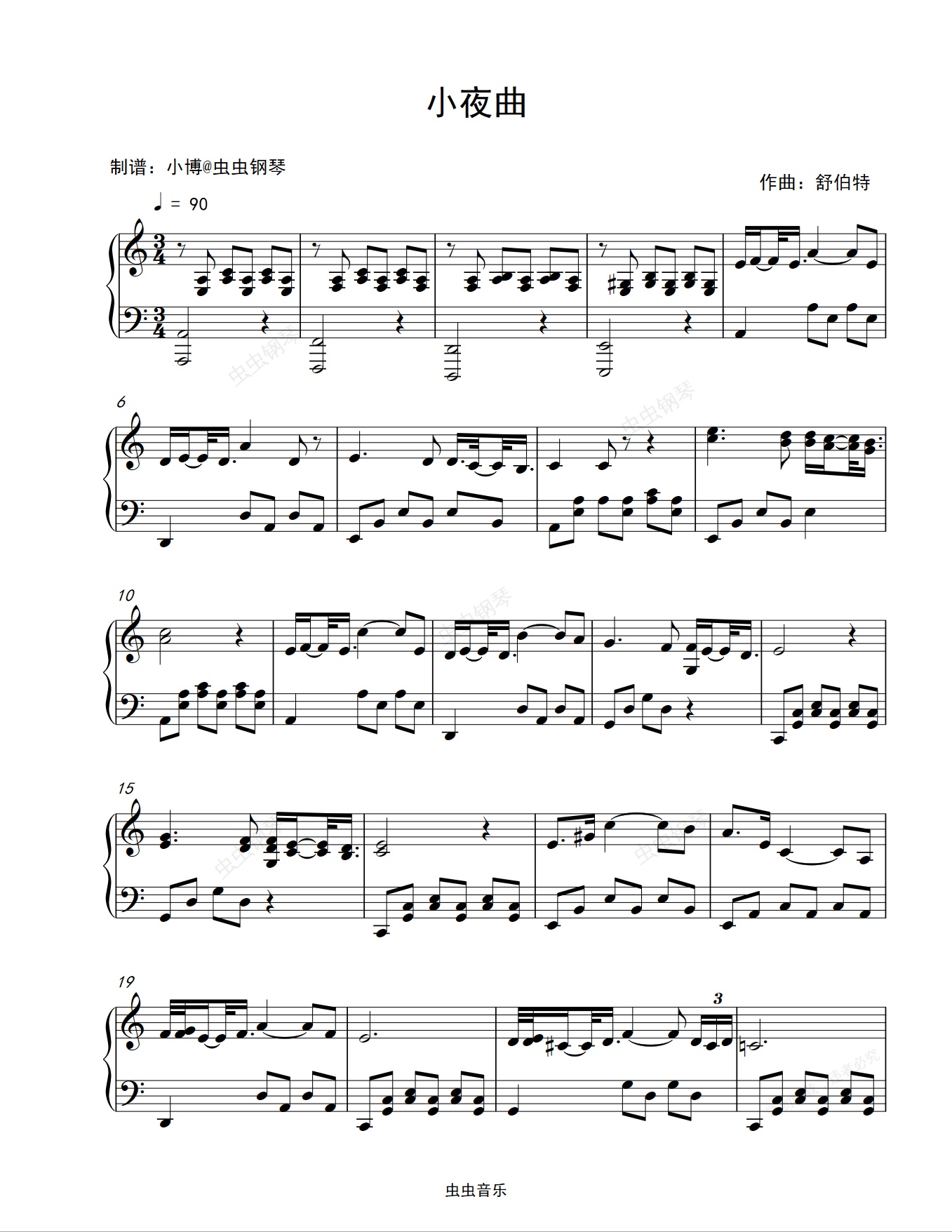 钢琴谱:小夜曲-C调原谱-舒伯特