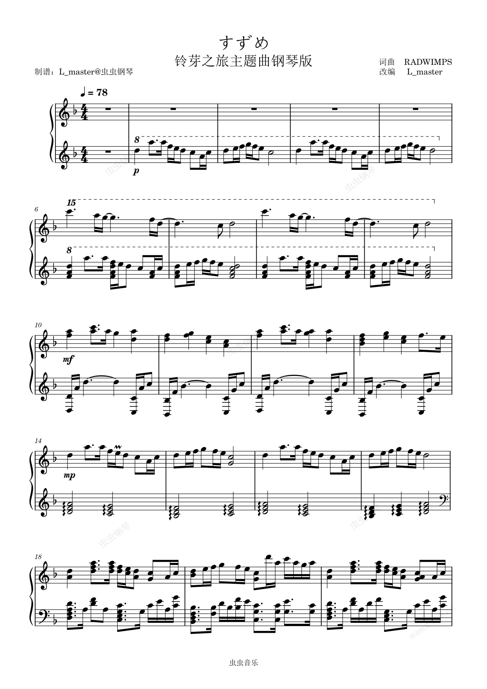 钢琴谱:铃芽之旅-RADWIMPS 钢琴超还原改编