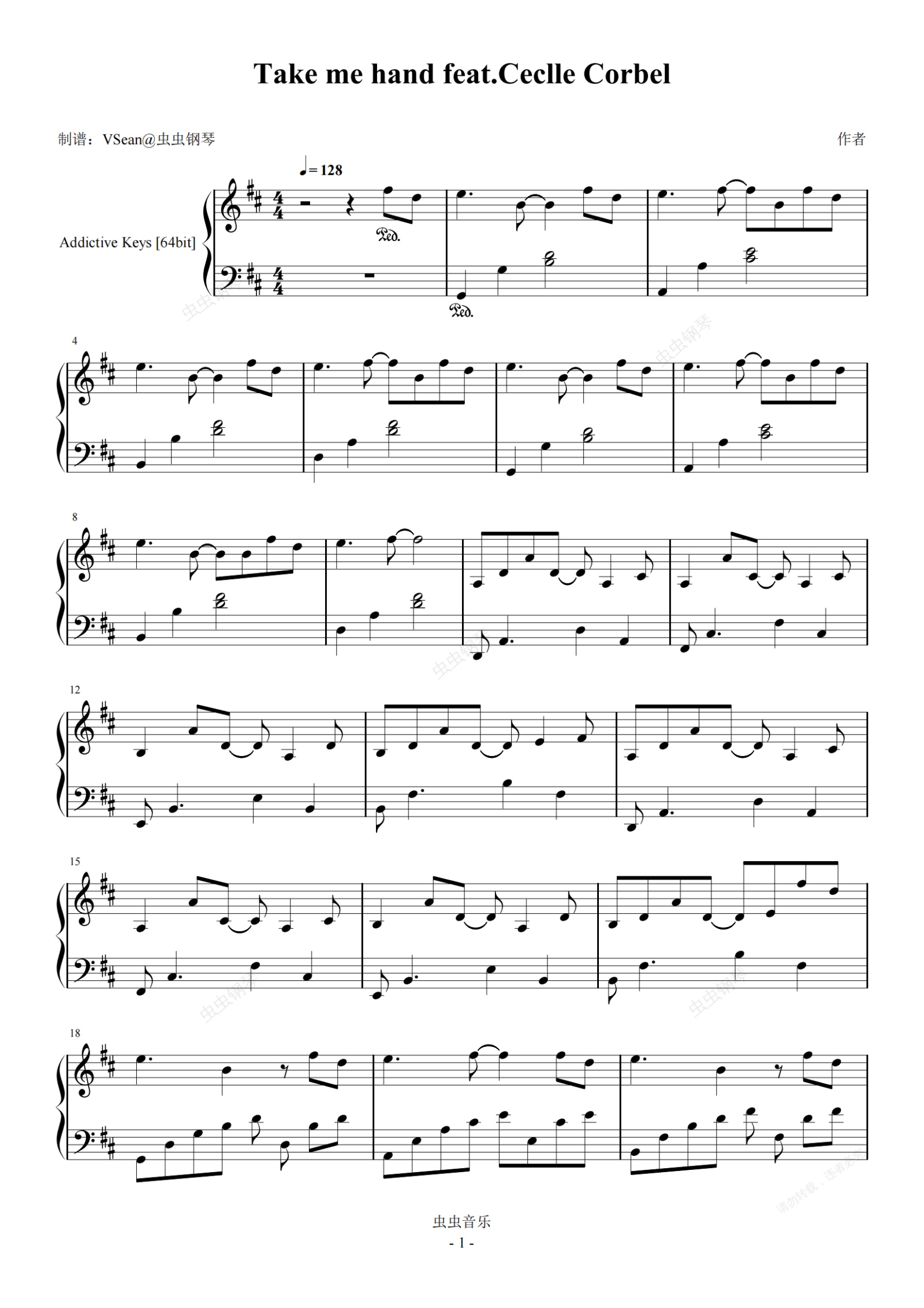 钢琴谱:Take me hand feat.Ceclle Corbel