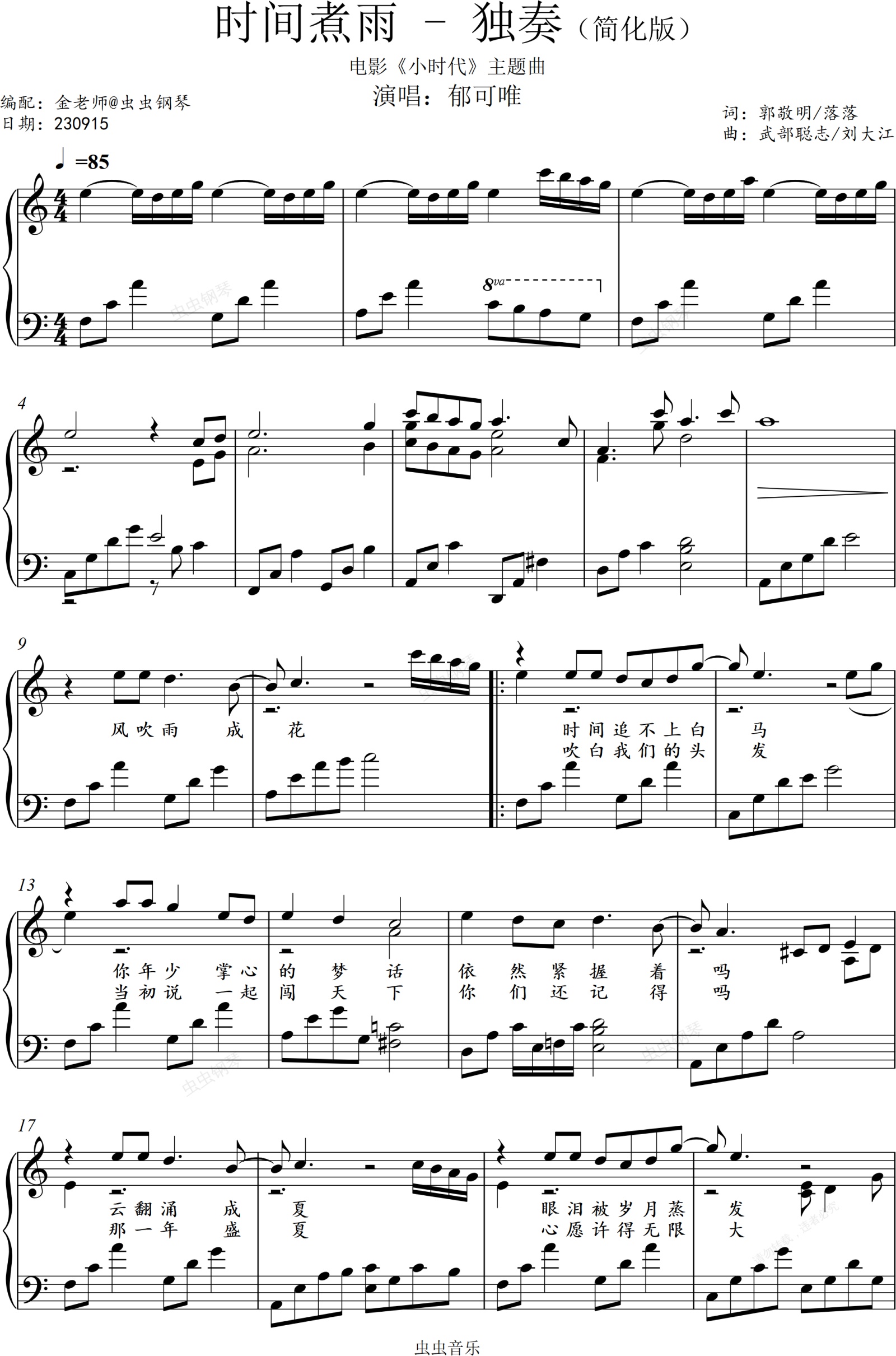 钢琴谱:时间煮雨-金老师钢琴独奏谱