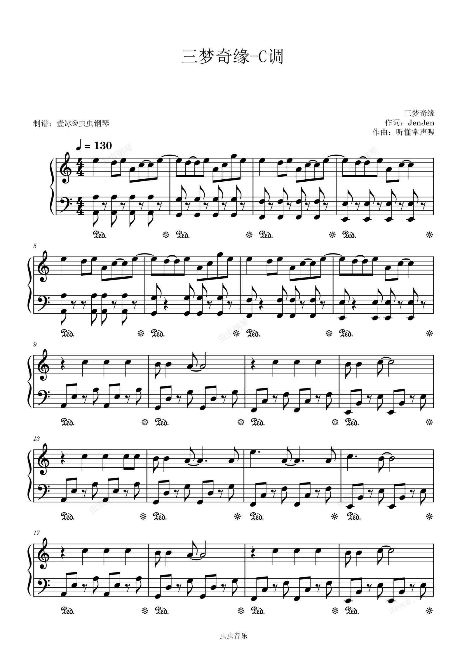 钢琴谱:三梦奇缘//三梦奇缘 - C调 简单易上手