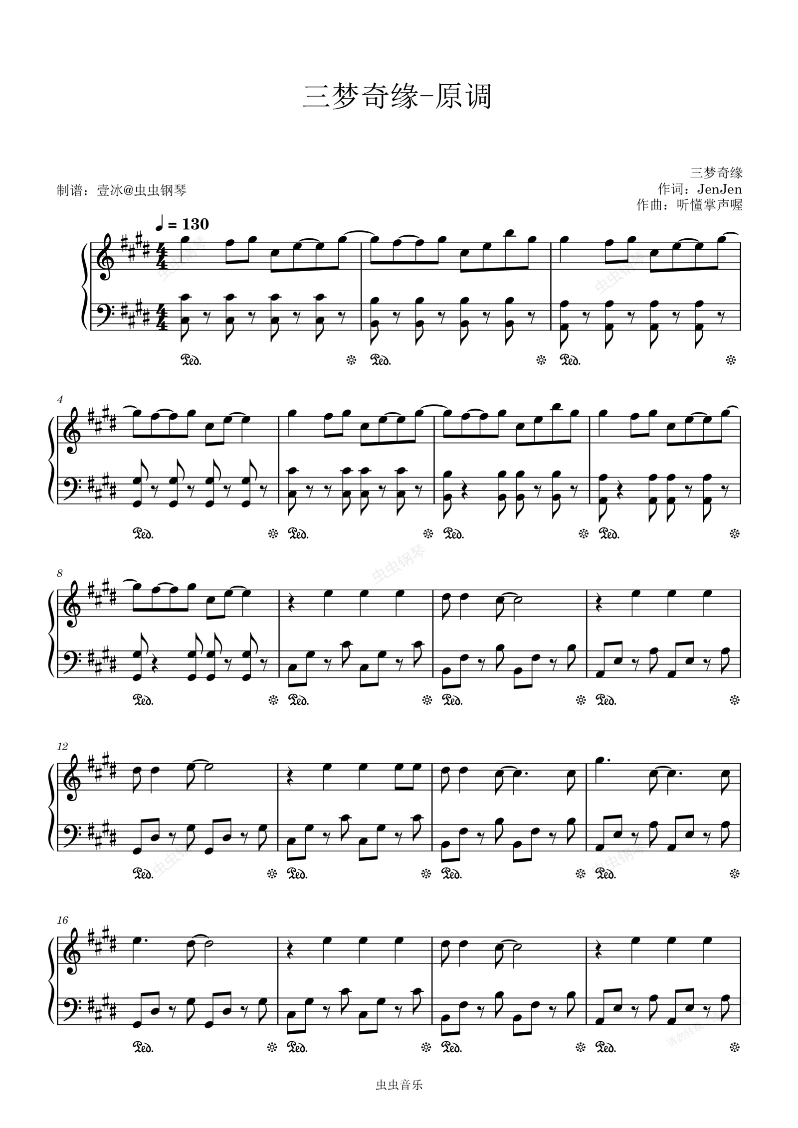 钢琴谱:三梦奇缘//三梦奇缘 - 原调 简单易上手