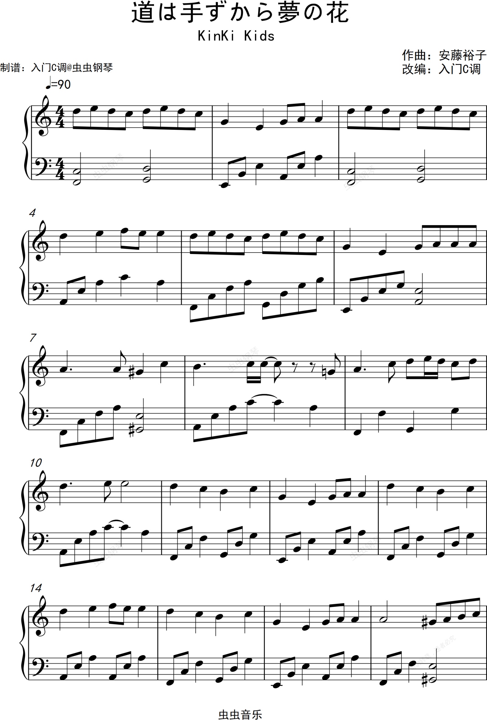 钢琴谱:KinKi Kids《道は手ずから夢の花》入门C调简单版
