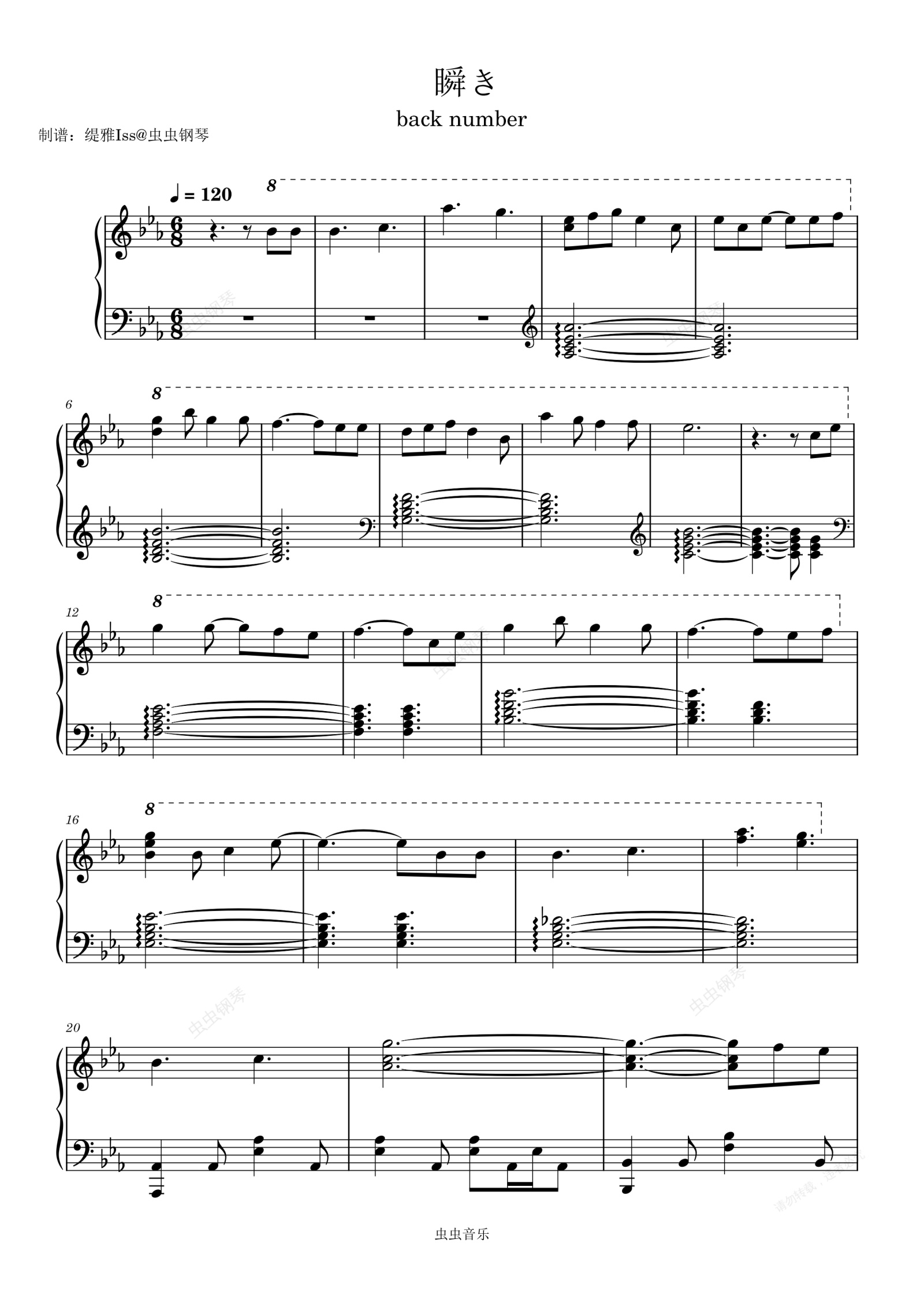 钢琴谱:瞬き(抒情版)- 《跨越8年的新娘》电影主题曲