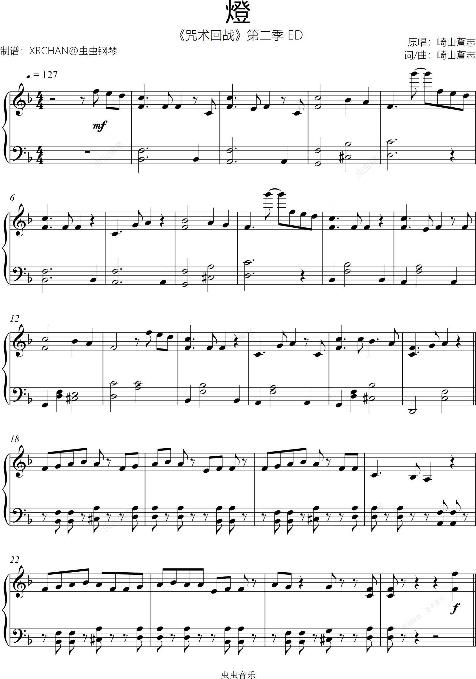 钢琴谱:「燈」《咒术回战》第二季 ED 初级