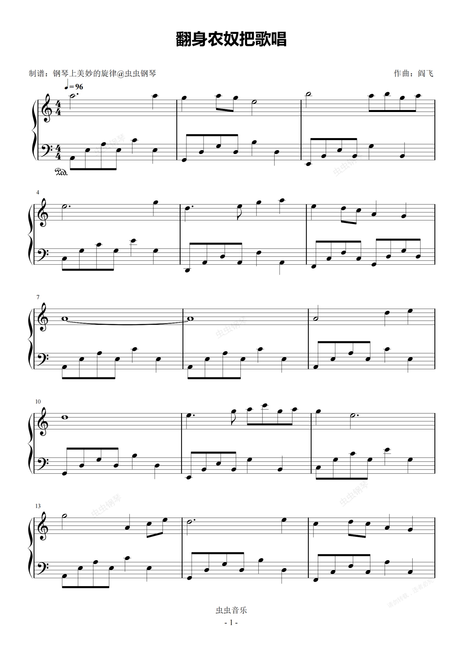 钢琴谱:翻身农奴把歌唱 C调简易版 刀郎 经典流行