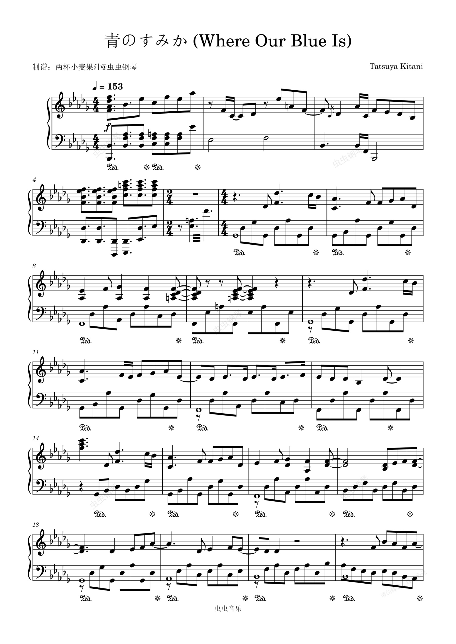 钢琴谱:青のすみか (Where Our Blue Is)-Tatsuya Kitani