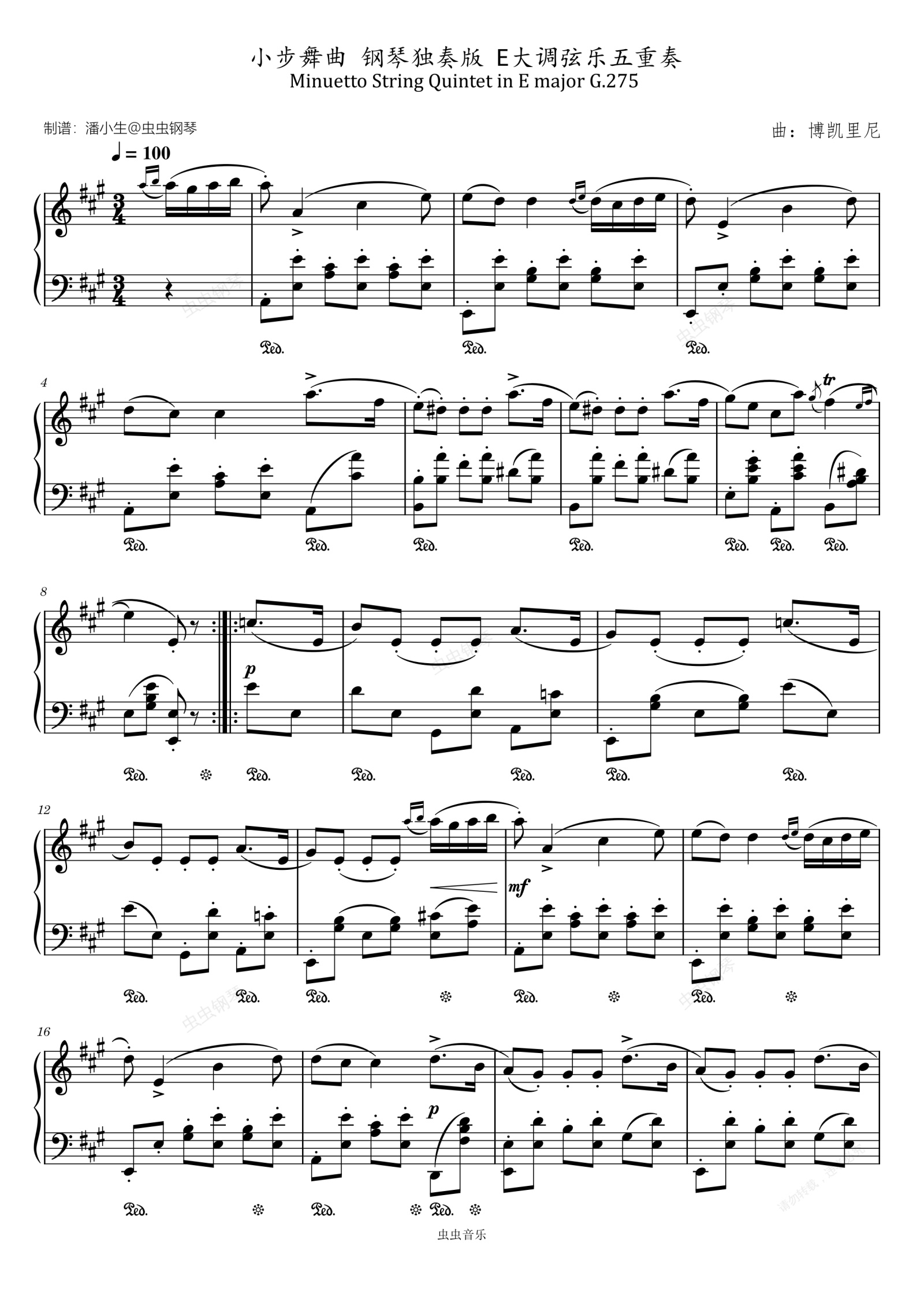 钢琴谱:博凯里尼 in E major G.275 小步舞曲 钢琴独奏版 E大调弦乐五重奏 Boccherini - Minuetto Op. 11 No. 5