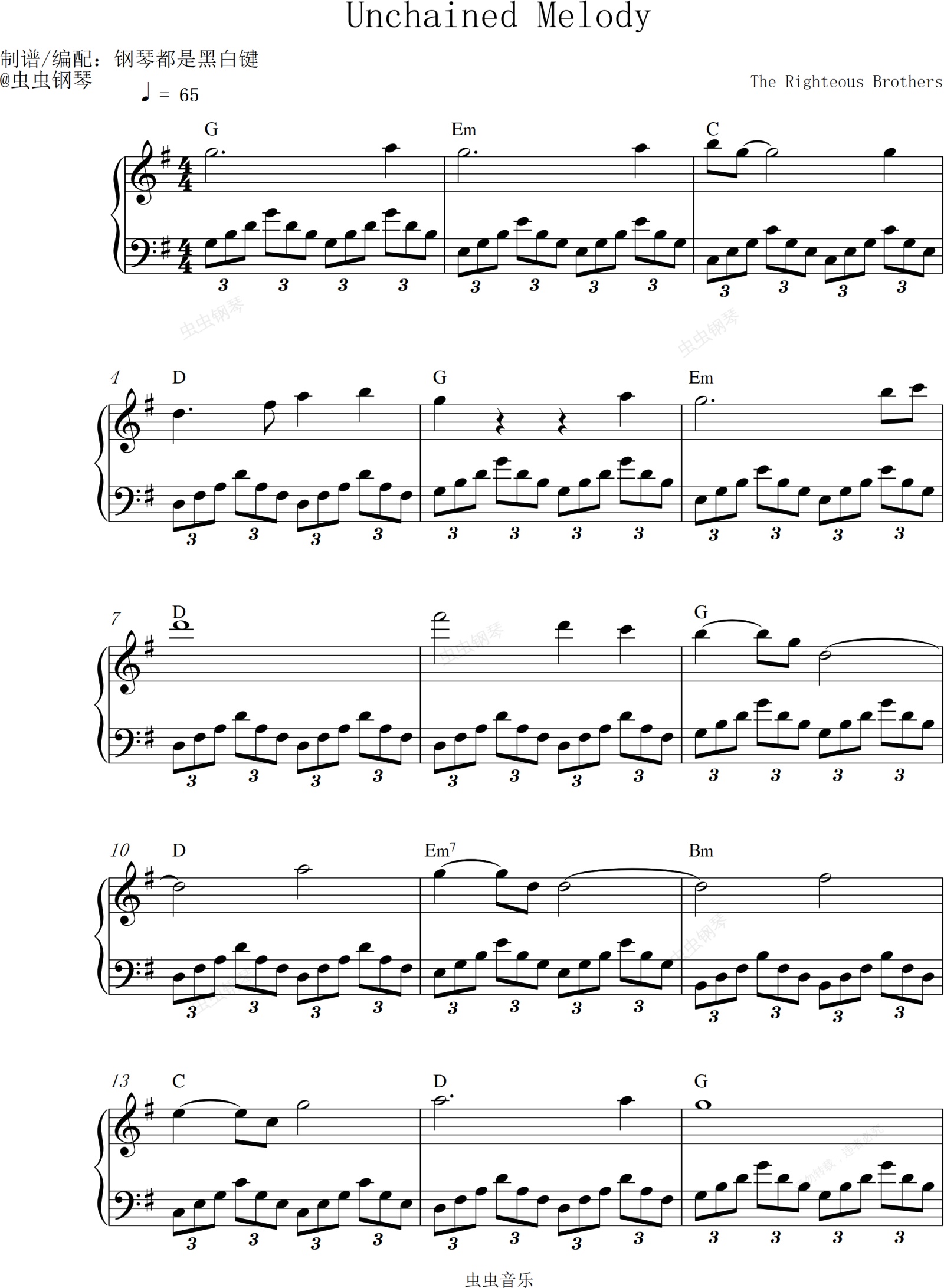 钢琴谱:Unchained Melody 真正的不朽的名曲!【抒情演奏版】