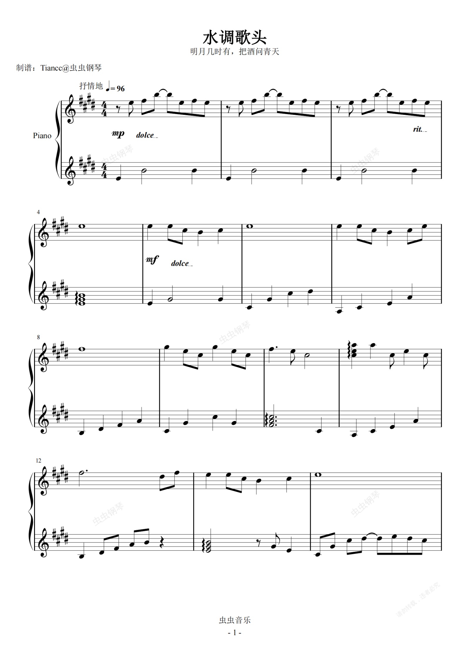 钢琴谱:《但愿人长久》虫钢的同学们中秋快乐~