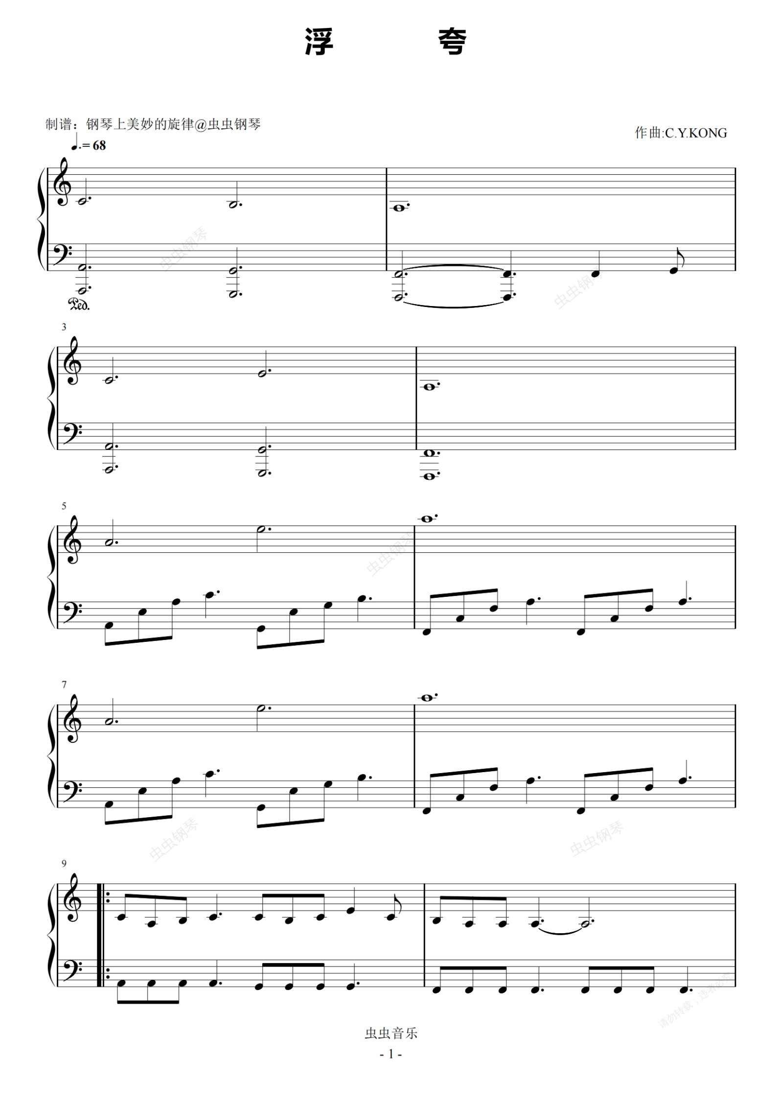 钢琴谱:浮夸 C调简易版 陈奕迅 流行经典