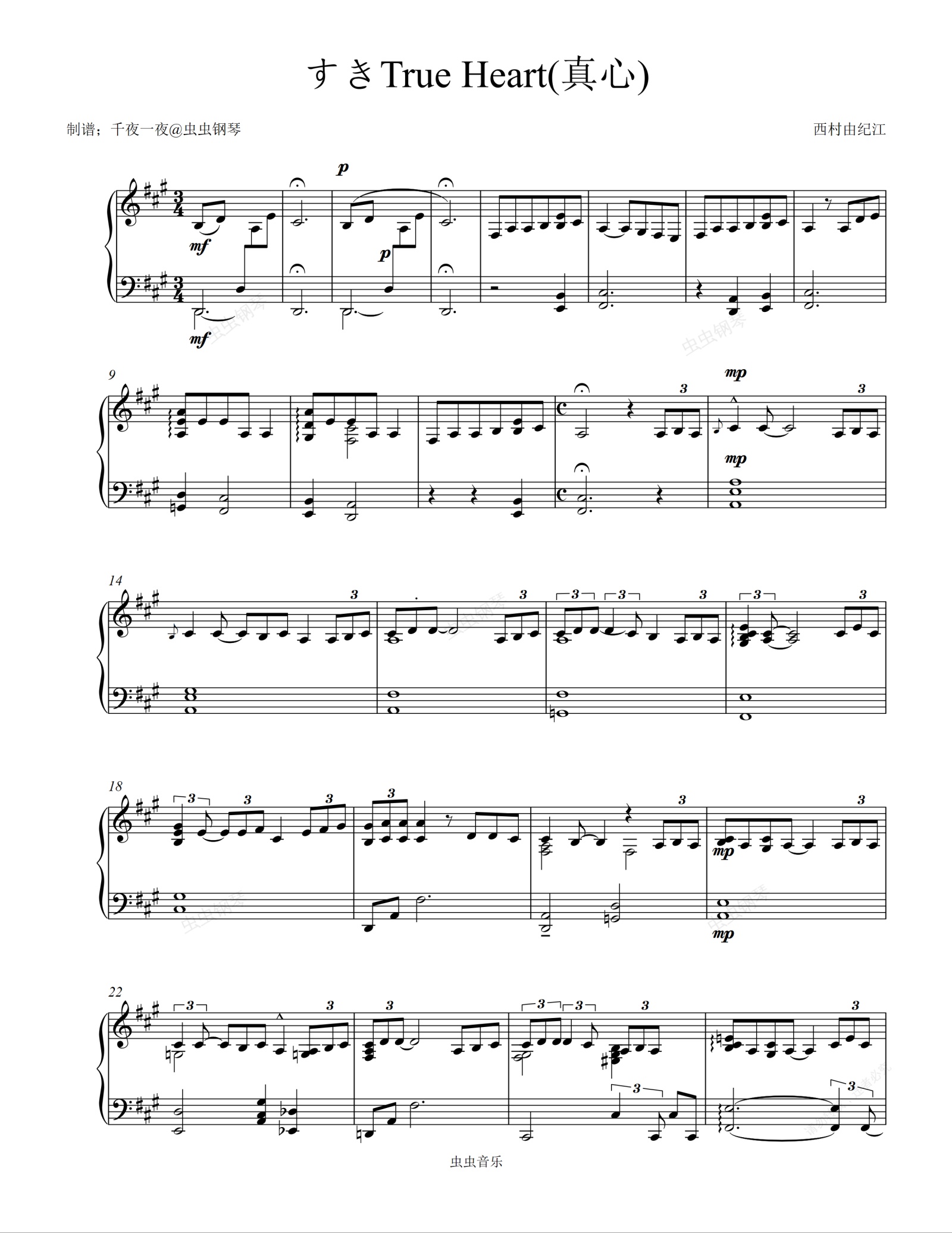 钢琴谱:すきTrue Heart(真心)