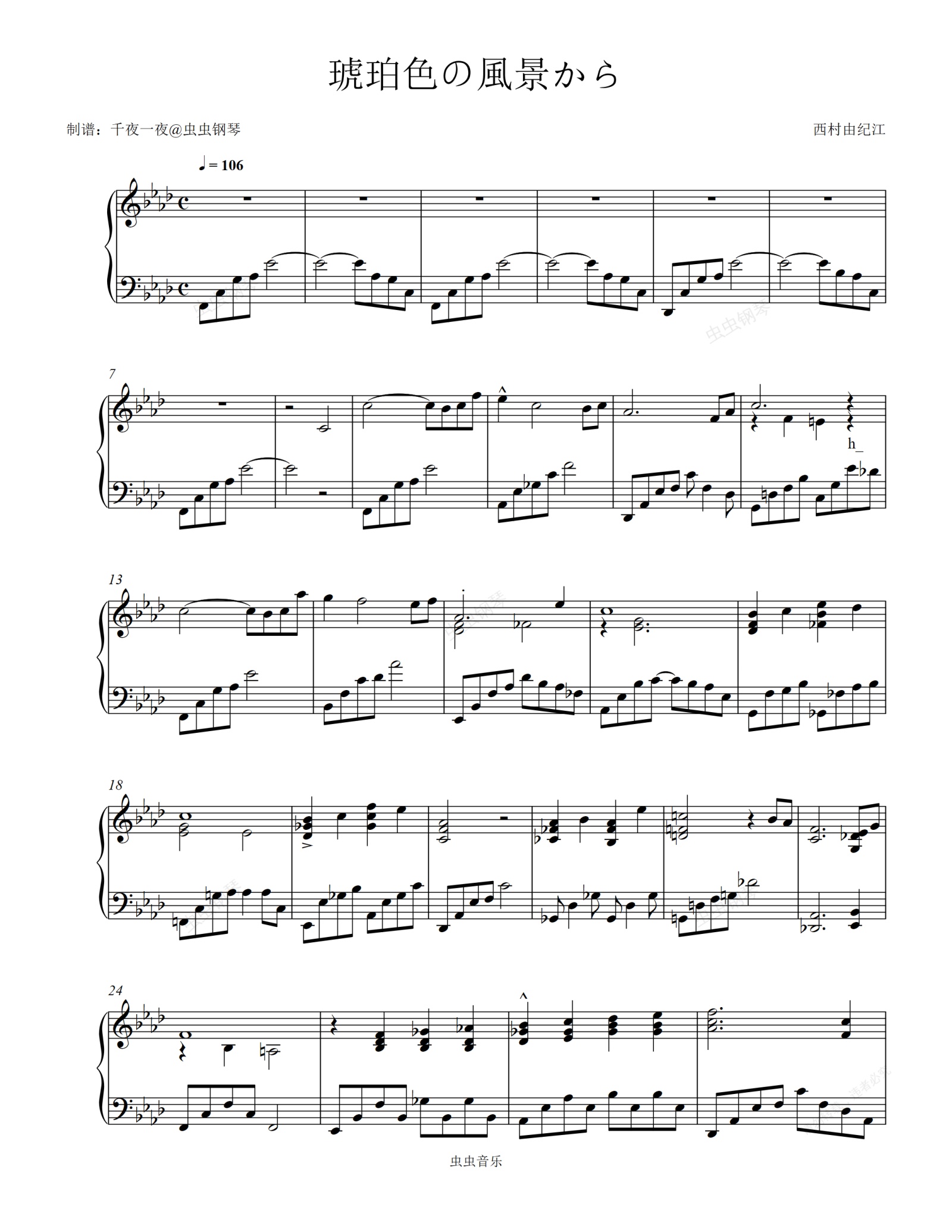 钢琴谱:琥珀色の風景から