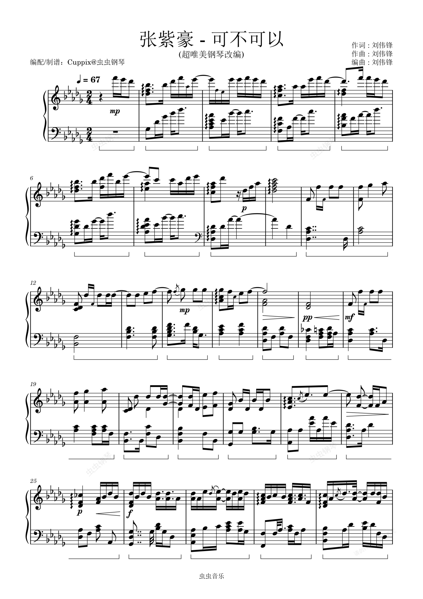 钢琴谱:张紫豪《可不可以》Cuppix编配-原调-超唯美钢琴独奏