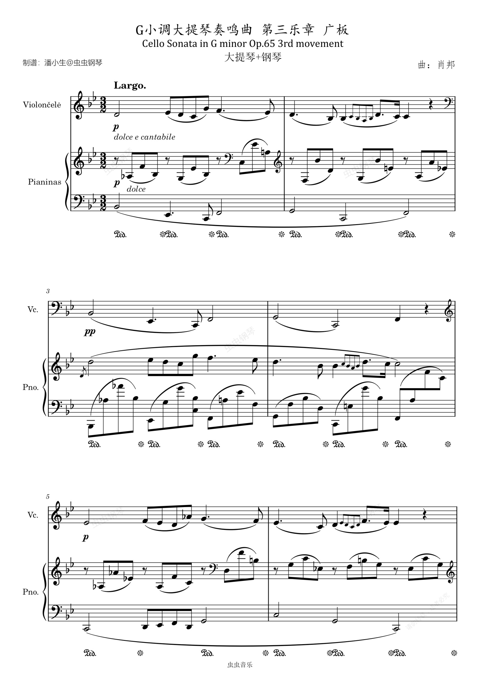 钢琴谱:肖邦 G小调大提琴奏鸣曲 Op.65 原版 第三乐章 广板 3rd mvt Cello Sonata in G minor Largo