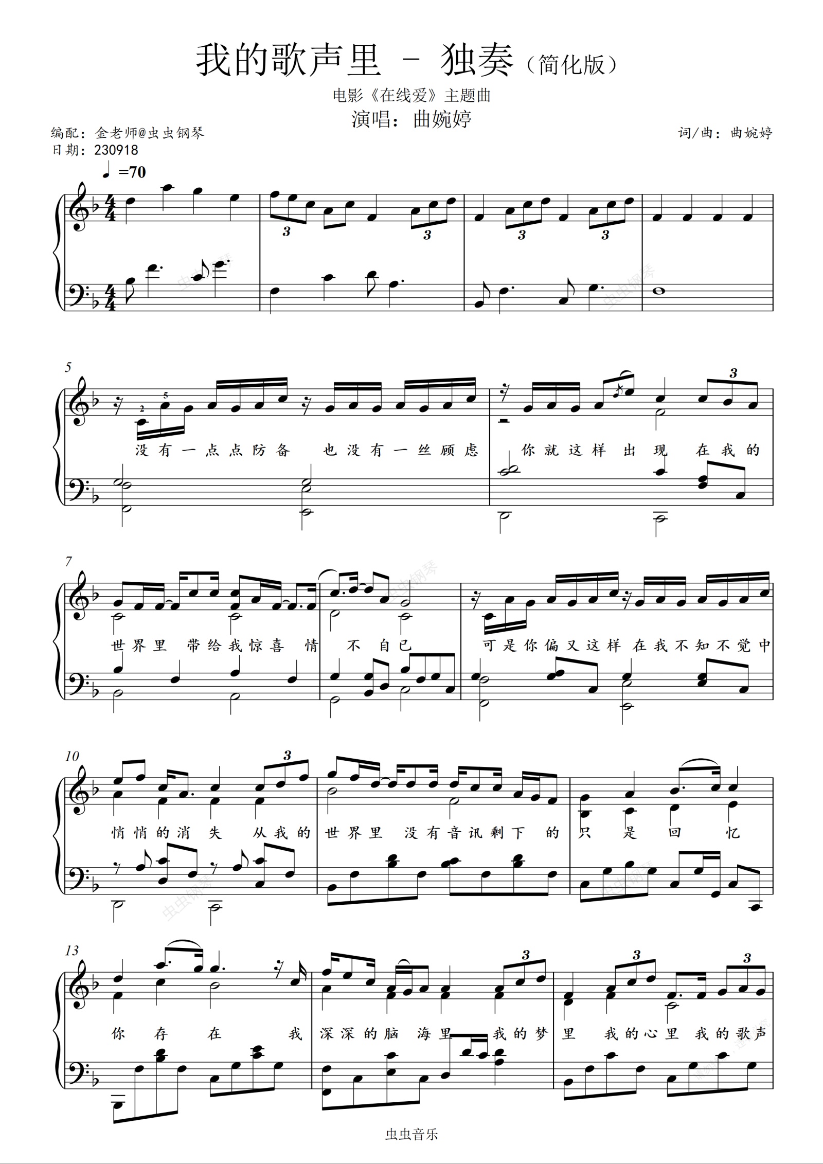 钢琴谱:我的歌声里-金老师钢琴独奏谱
