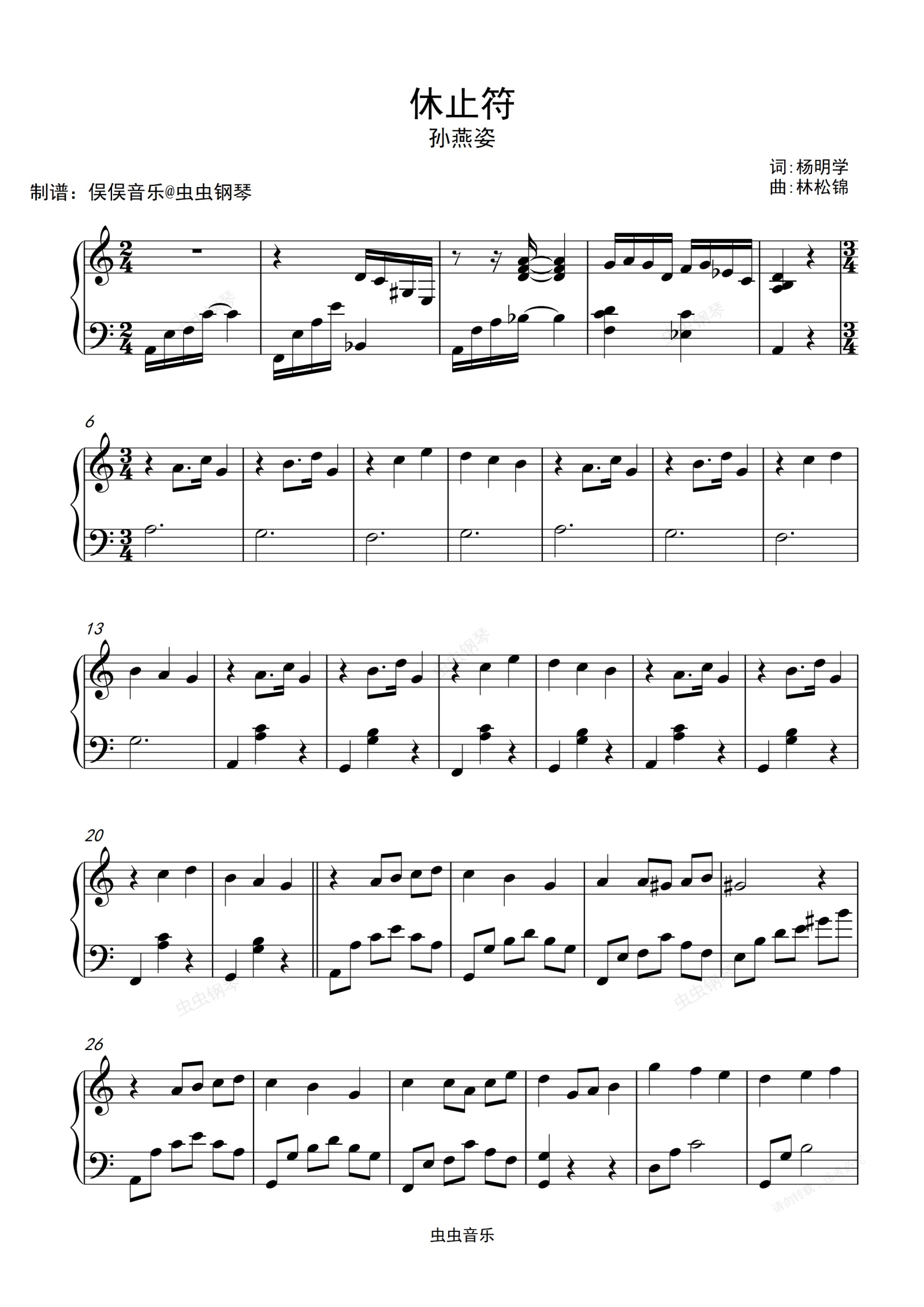 钢琴谱:孙燕姿 - 休止符(简易版)