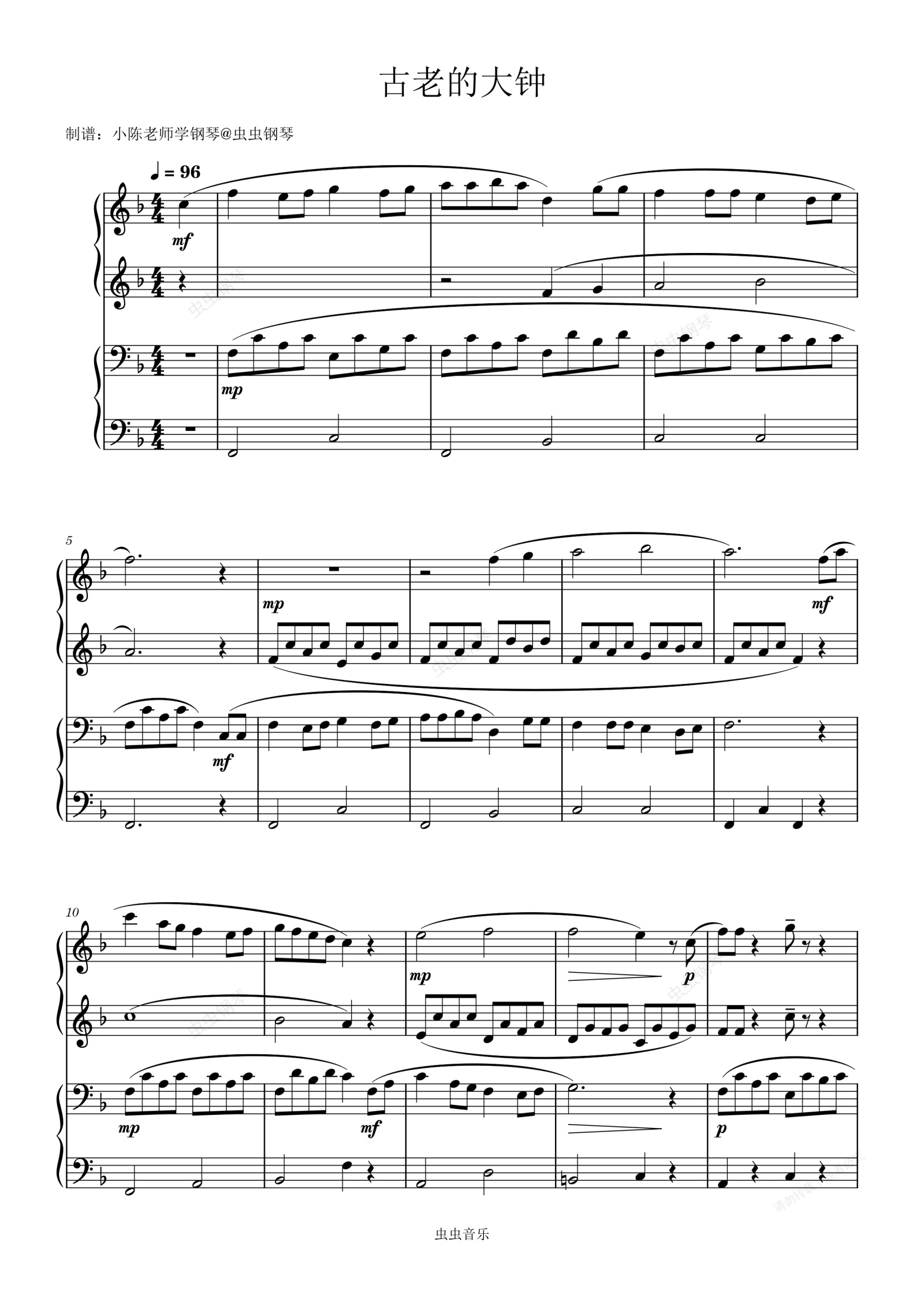 钢琴谱:大きな古時計/古老的大鐘/ My Grandfather's Clock 四手联弹