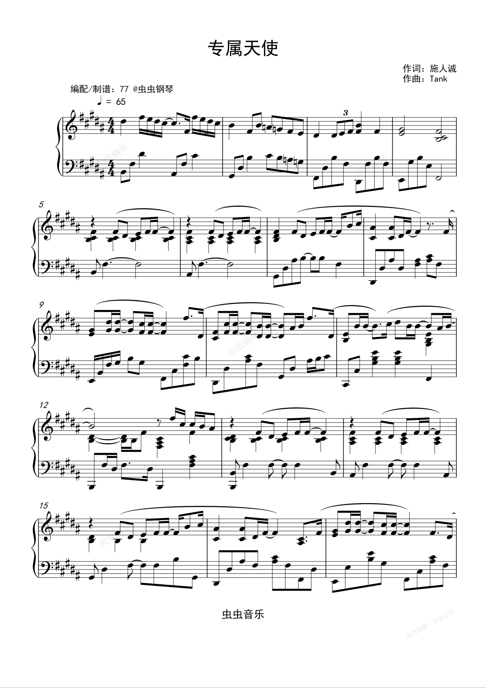 钢琴谱:Tank-《专属天使》钢琴独奏谱 原调