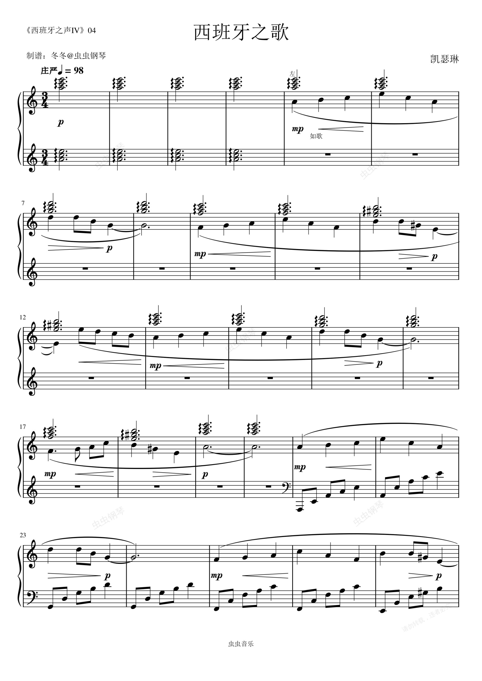 您的位置: 首页 > 钢琴谱库 > 西班牙之歌钢琴谱-凯瑟琳