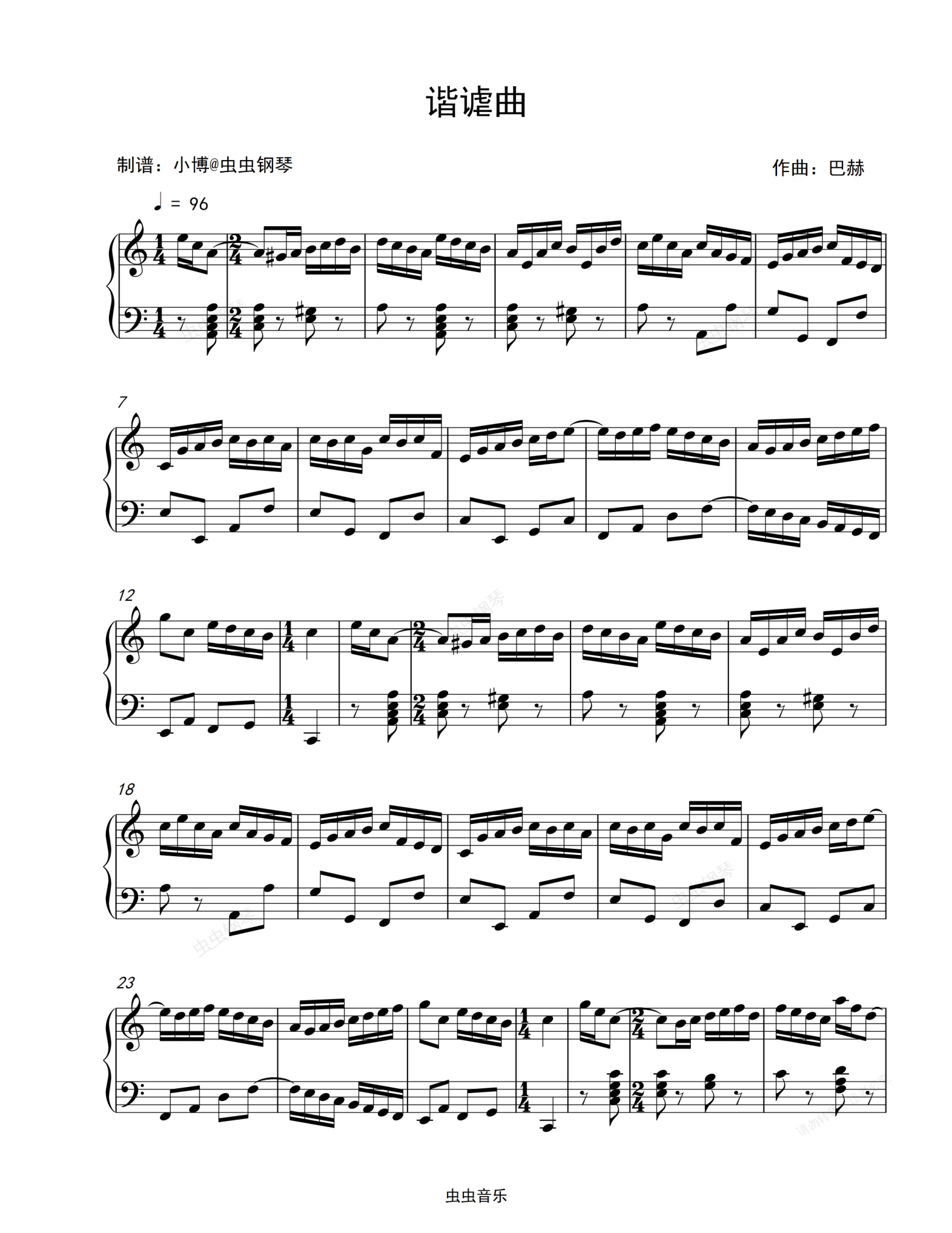 钢琴谱:谐谑曲 25-巴赫初级钢琴曲