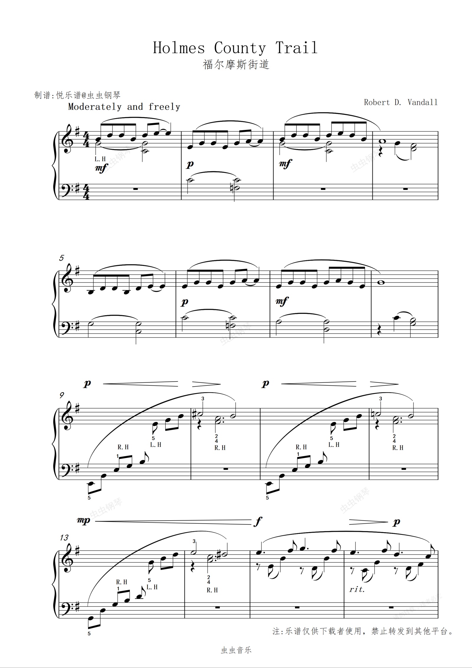 钢琴谱:福尔摩斯街道//Holmes County Trail【思绪】