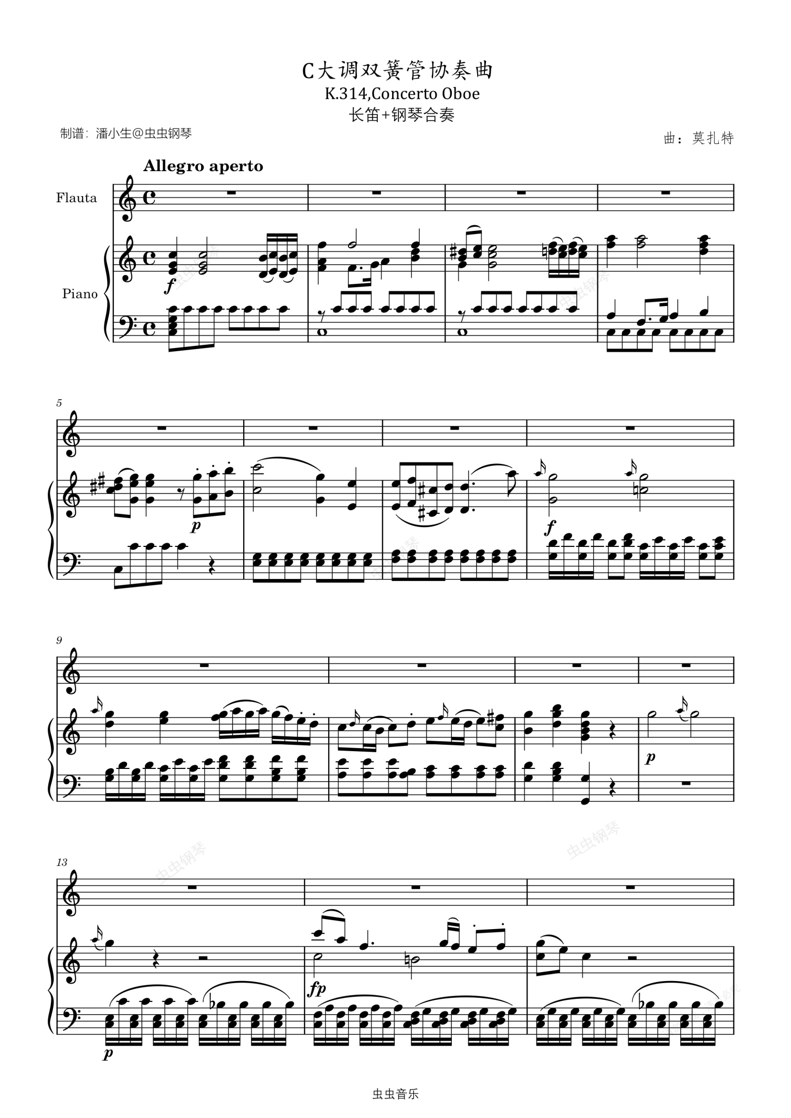 钢琴谱:莫扎特 C大调双簧管协奏曲,K.314, Mov.III,第三乐章 长笛+钢琴合奏 原版
