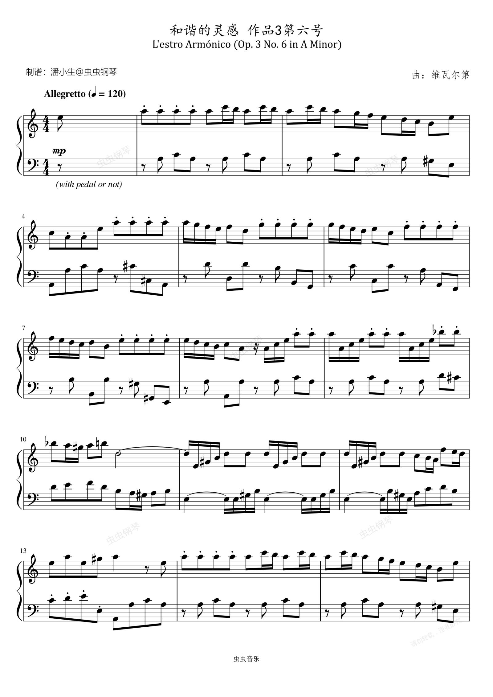 钢琴谱:维瓦尔第 和谐的灵感,Op.3 No.6 钢琴独奏 L'Estro Armonico - ( in A Minor)