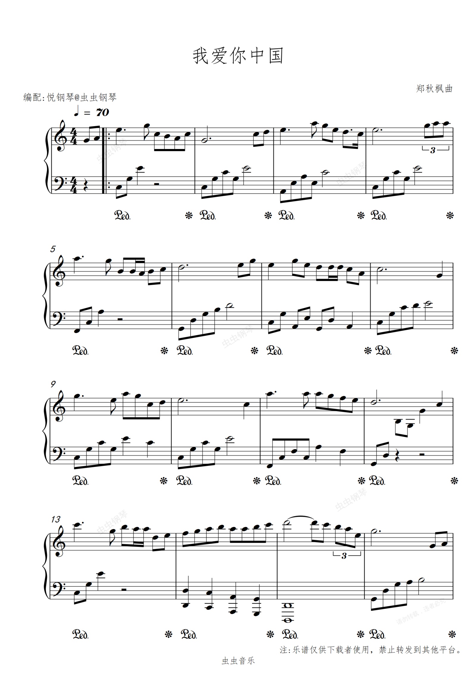 钢琴谱:我爱你中国