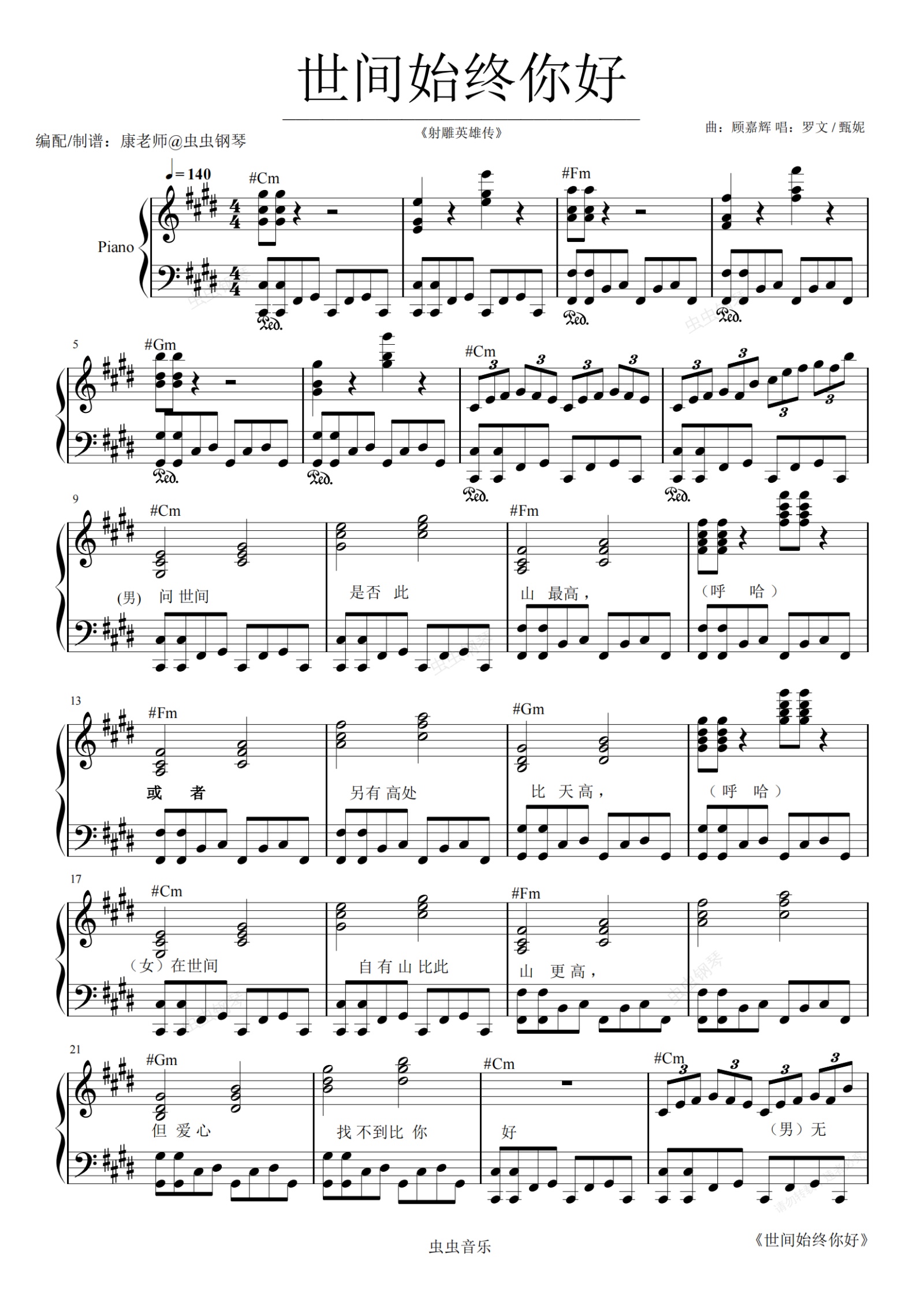 钢琴谱:世间始终你好-《射雕英雄传》-罗文甄妮