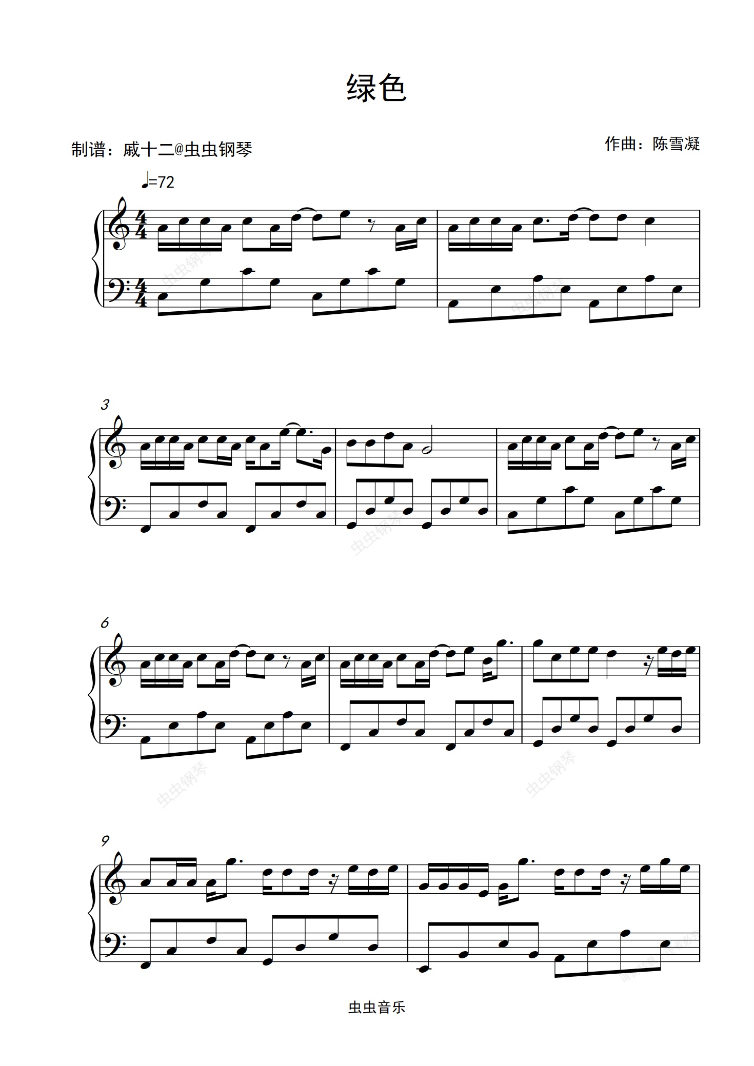 钢琴谱:绿色-C调简单版