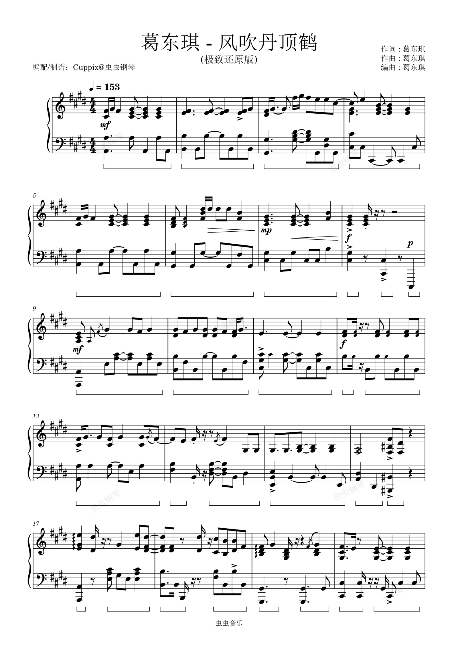 钢琴谱:《风吹丹顶鹤》极限还原-Cuppix编配-全程高能(葛东琪)