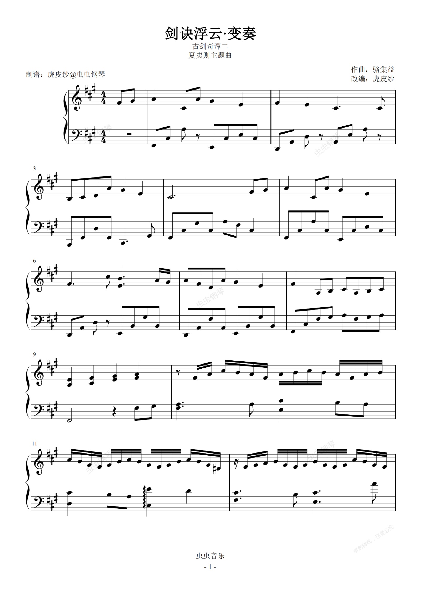 钢琴谱:古剑奇谭二 剑诀浮云·变奏