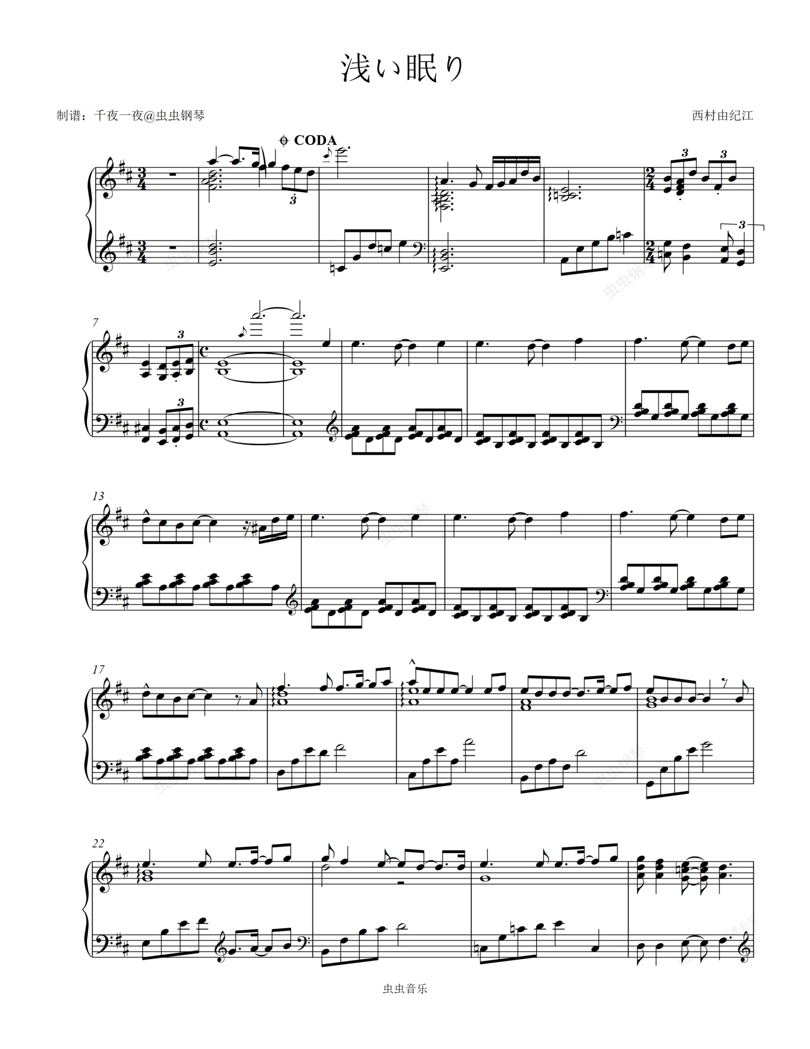 钢琴谱:浅い眠り