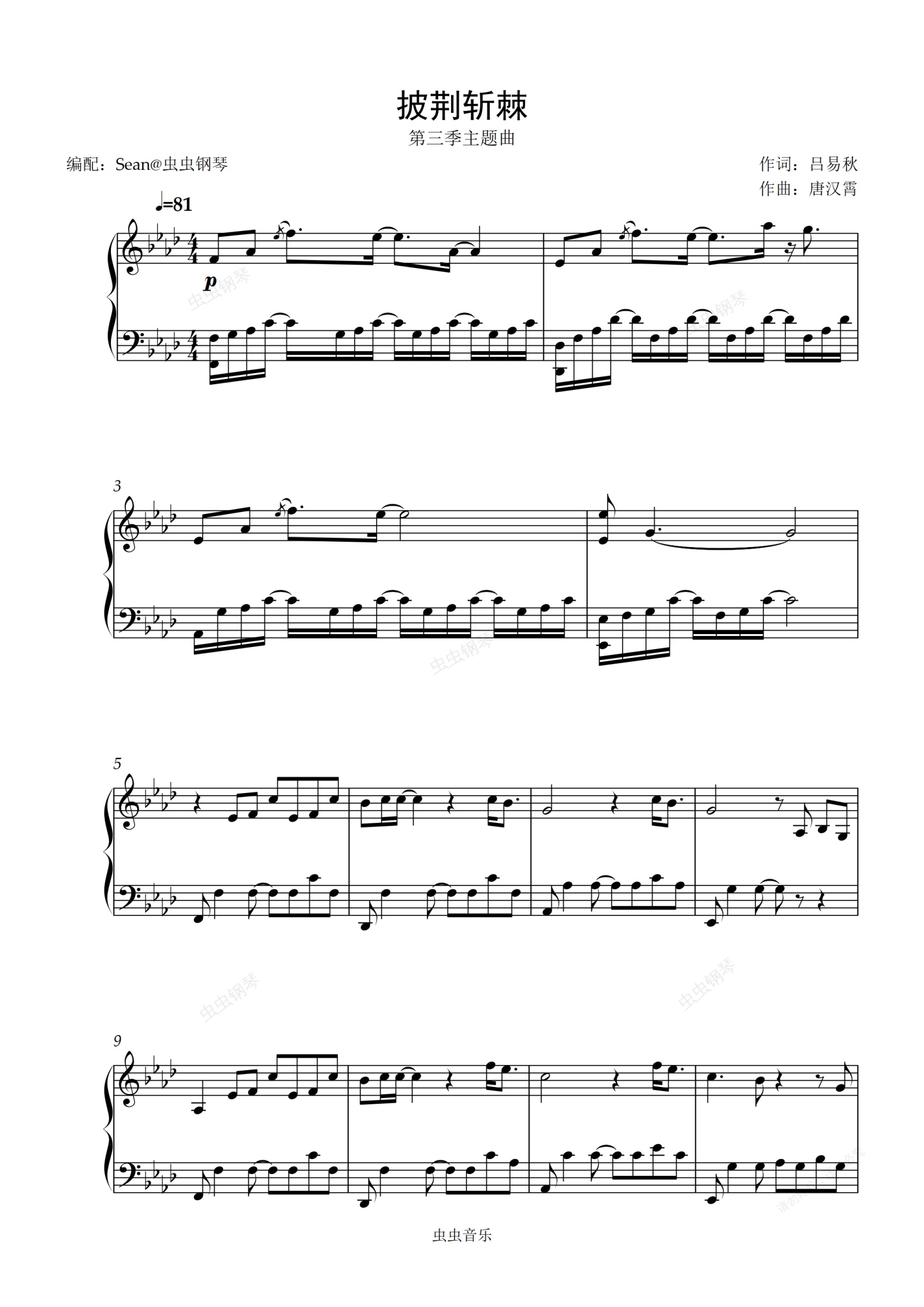 钢琴谱:《披荆斩棘》第三季主题曲-完美演奏版