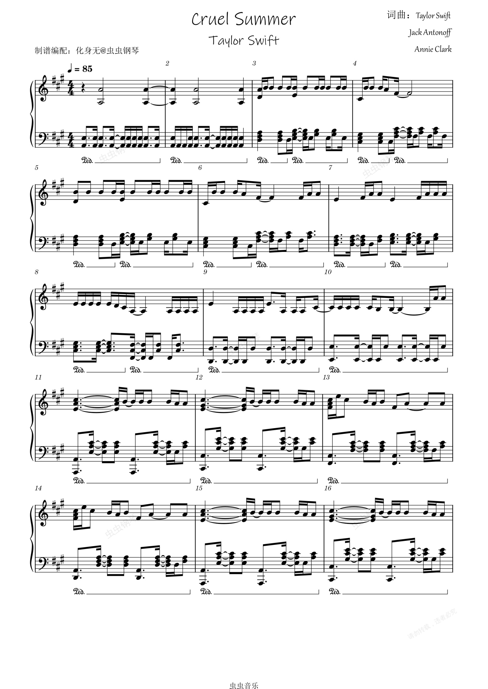 钢琴谱:Cruel Summer 化身无编配 原调独奏版