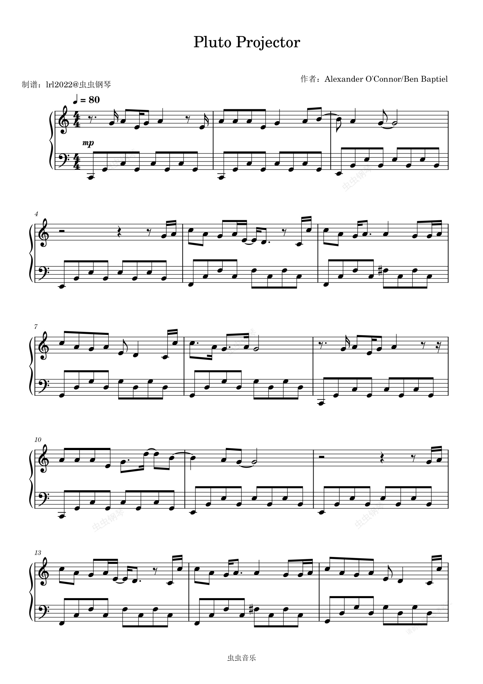 钢琴谱:Pluto projector - 钢琴独奏 - Rex Orange County